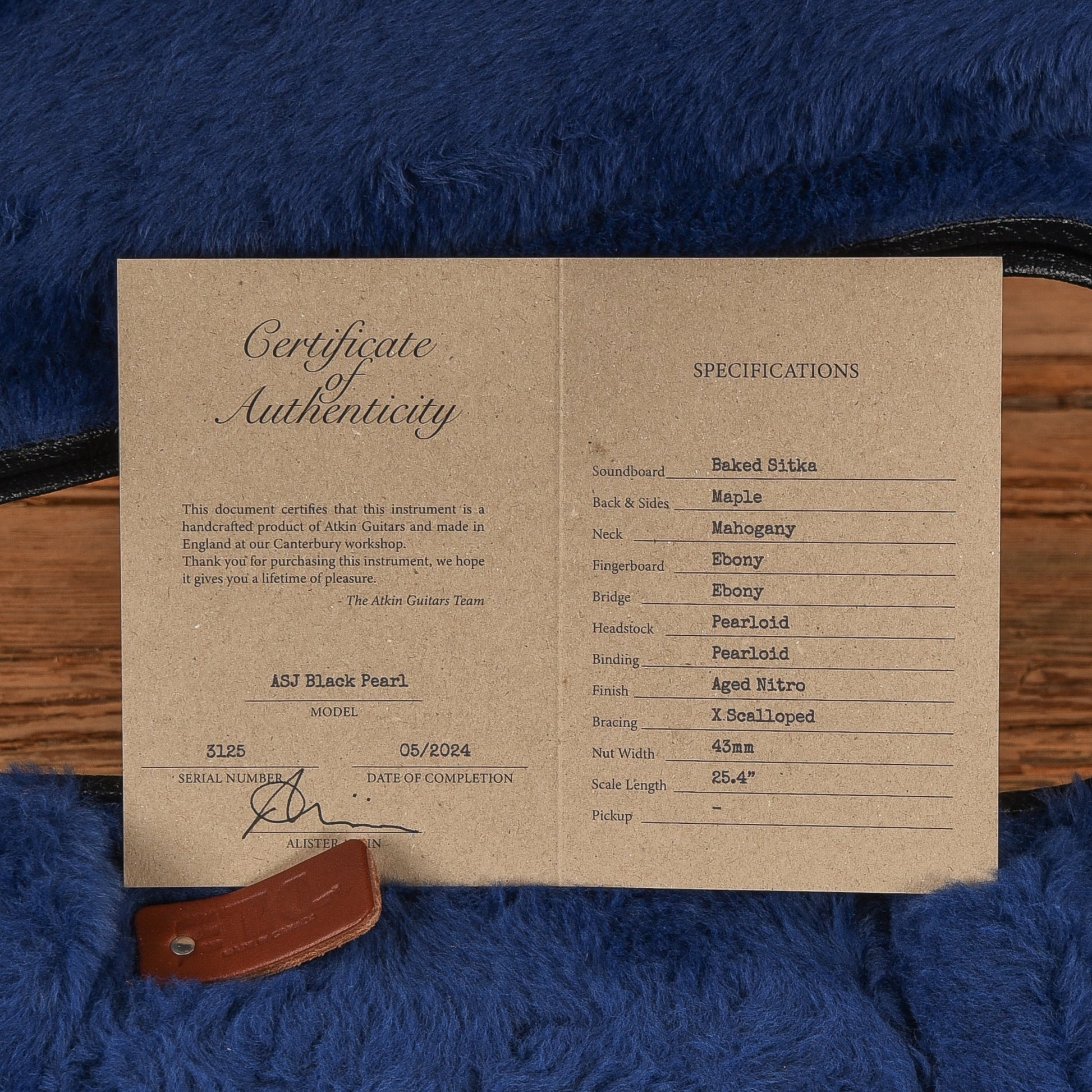 | Tech Notes: | This Atkin plays well with low action. The frets are tall and show little wear. |