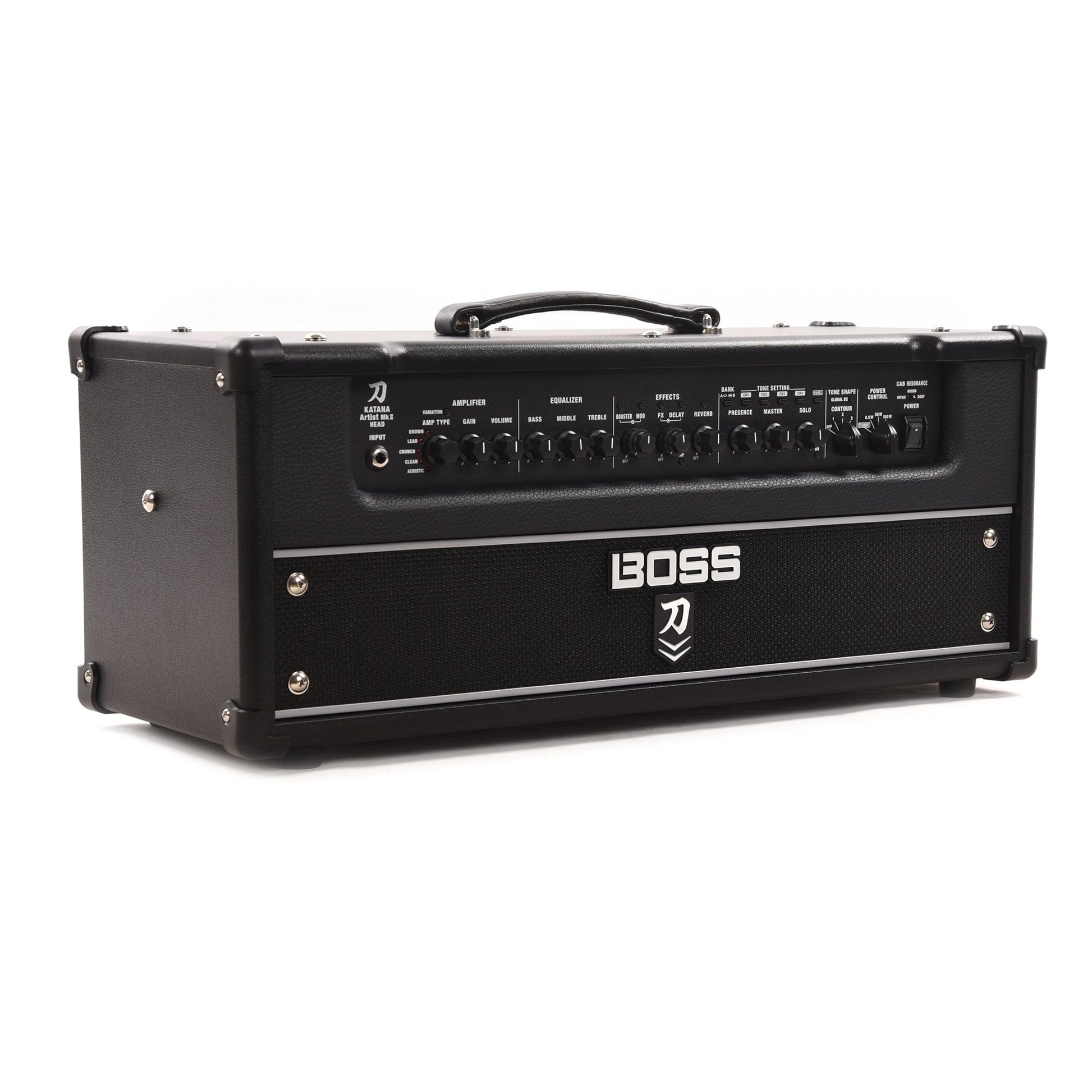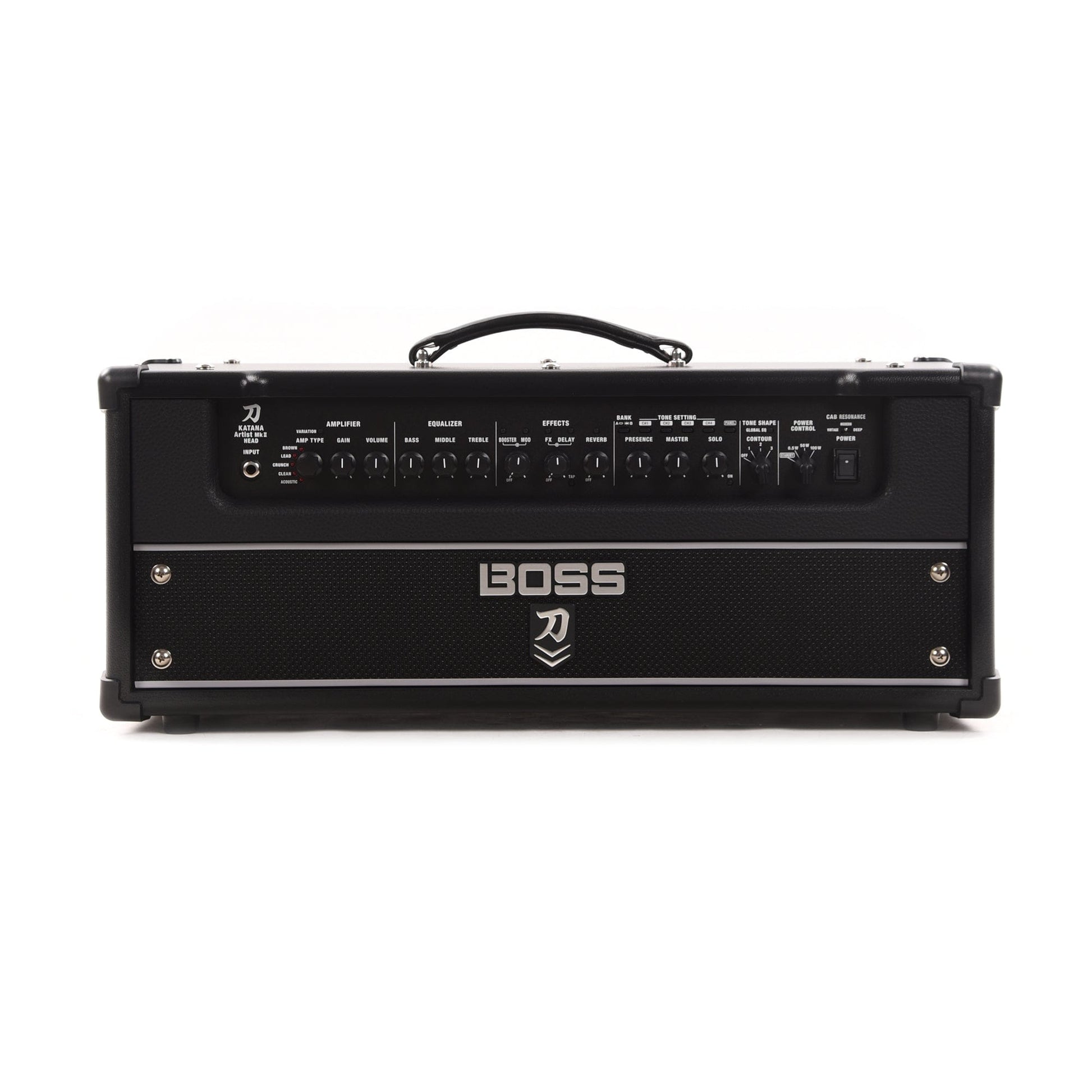 The Katana-Artist MkII Head brings you the premium sound and features of the flagship Katana-Artist MkII combo in a powerful 100-watt amplifier head. Cover any style with five amp characters and five variations, and color your tones with a wide range of onboard BOSS effects. Shape your voice with exclusive panel controls, including a three-way Contour switch, Global EQs, an adjustable Solo boost with dedicated delay, and five selectable Air Feel settings. And rock the stage with a roaring presence using the companion Katana Cabinet 212 Waza or your favorite external speaker cabs.