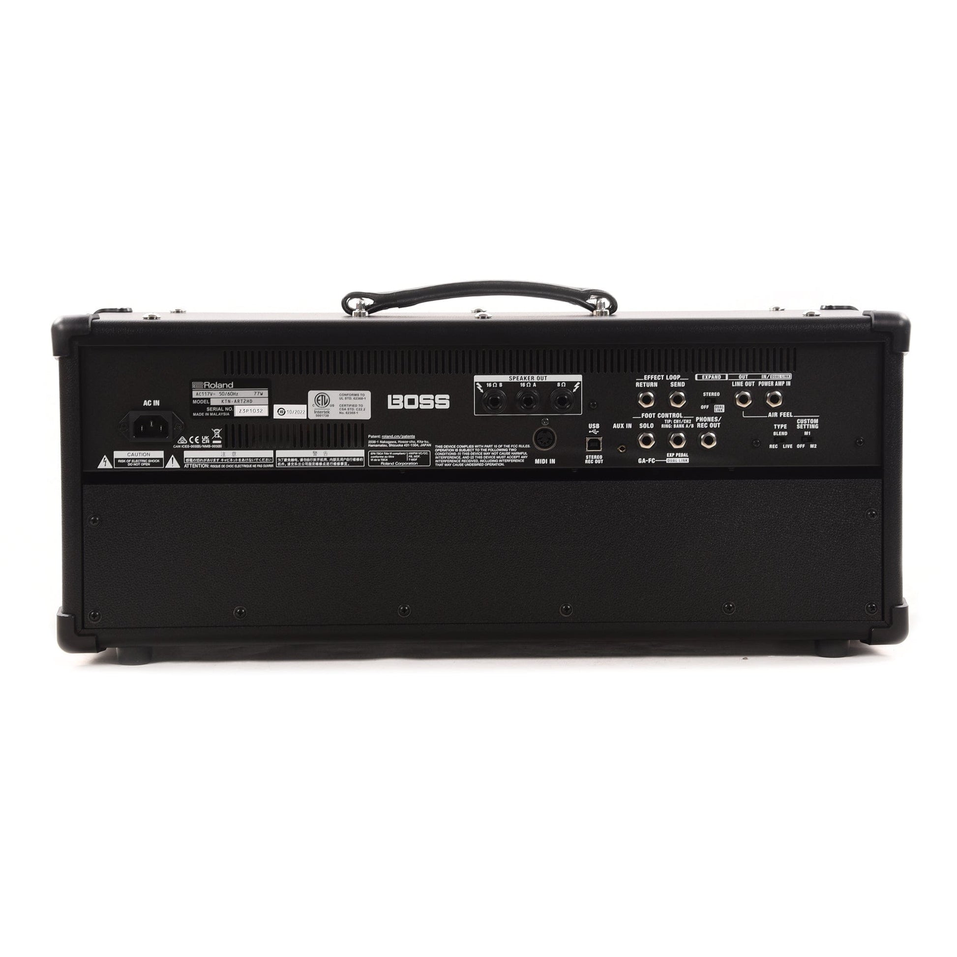 Line, USB, and phones/recording outputs feature mic'd cabinet emulation for sending mix-ready amp tones to a PA system, computer DAW, or headphones. Shape the direct sound with selectable Air Feel settings on the rear panel, including three presets and two custom settings that you configure in BOSS Tone Studio. Two-channel USB audio is supported, allowing you to track in true stereo with many of the amp’s mod, EQ, delay, and reverb effects.