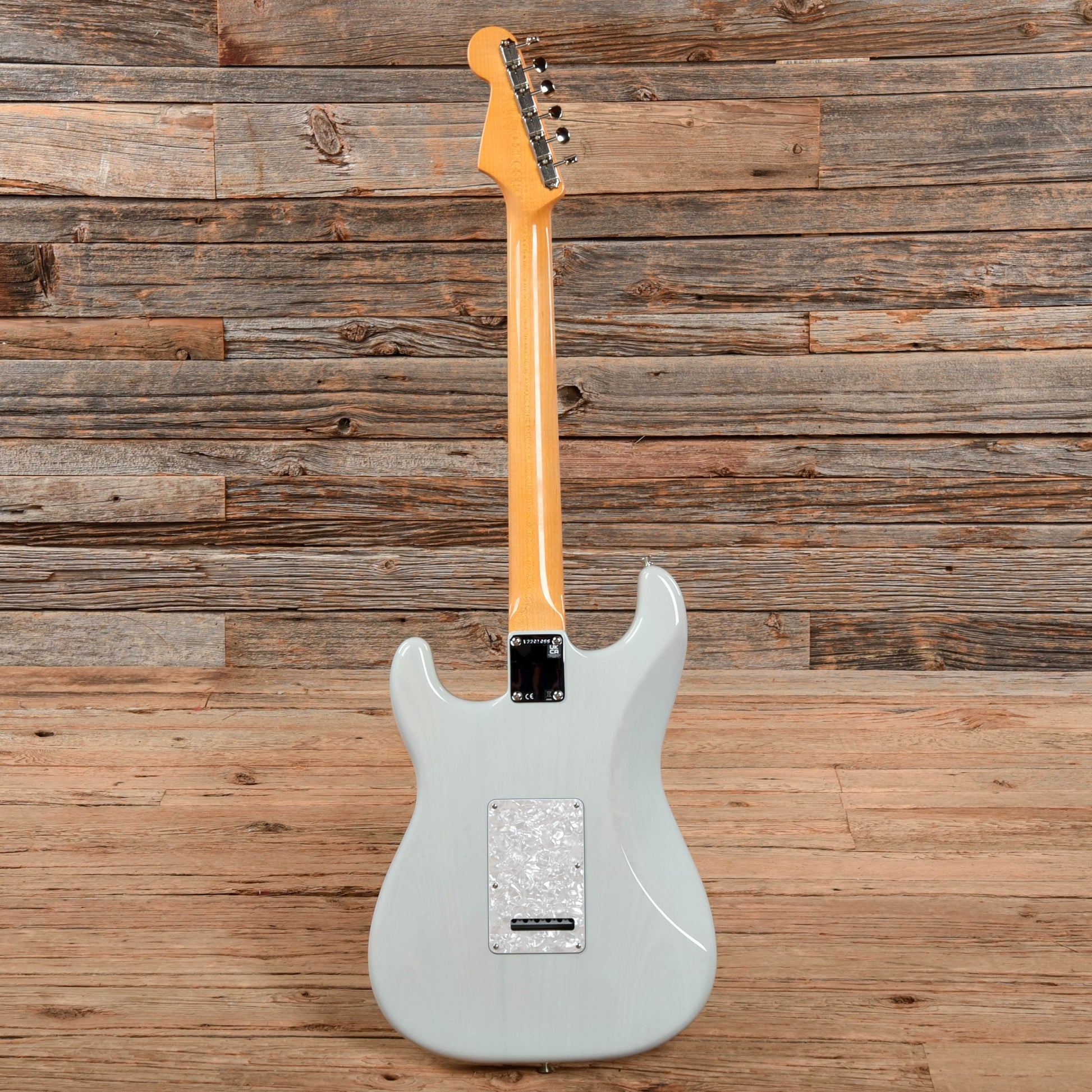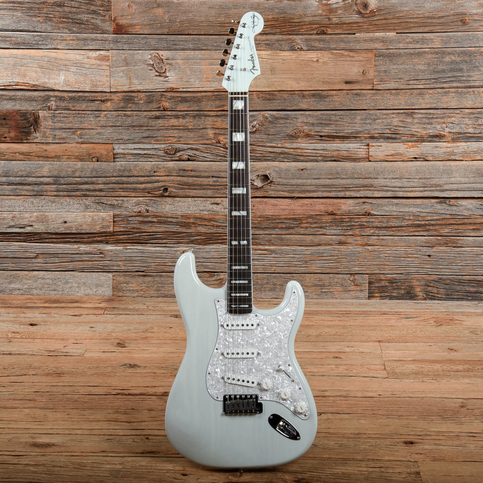 | Tech Notes: | This Stratocaster plays well with low action and optimal neck relief. The frets are tall and show light play wear. It has been properly setup and intonated with 10 gauge strings in standard tuning. |