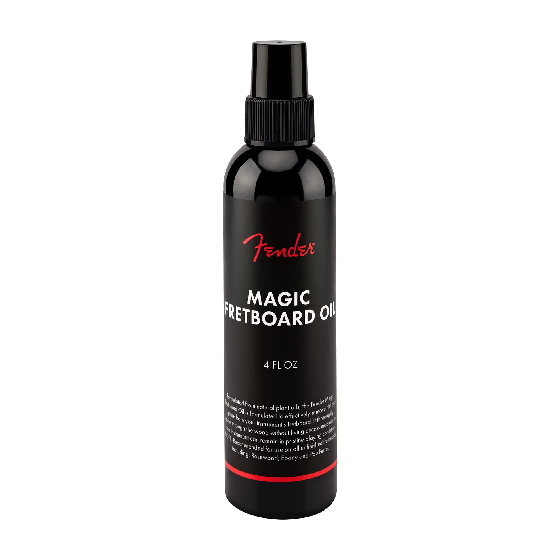 Formulated from natural plant oils, the Fender Magic Fretboard Oil effectively removes dirt and grime while leaving your instrument’s fretboard good as new. It thoroughly soaks through the wood without living excess moisture so your instrument can remain in pristine playing condition. This fretboard oil is free of any lemon oil extracts, which can be known to dry out the fretboard and potentially break down adhesive material keeping the frets and fretboard binding in place, resulting in more frequent maintenance required. NOTE: Recommended for use on all unfinished fretboards including: Rosewood, Ebony and Pau Ferro.