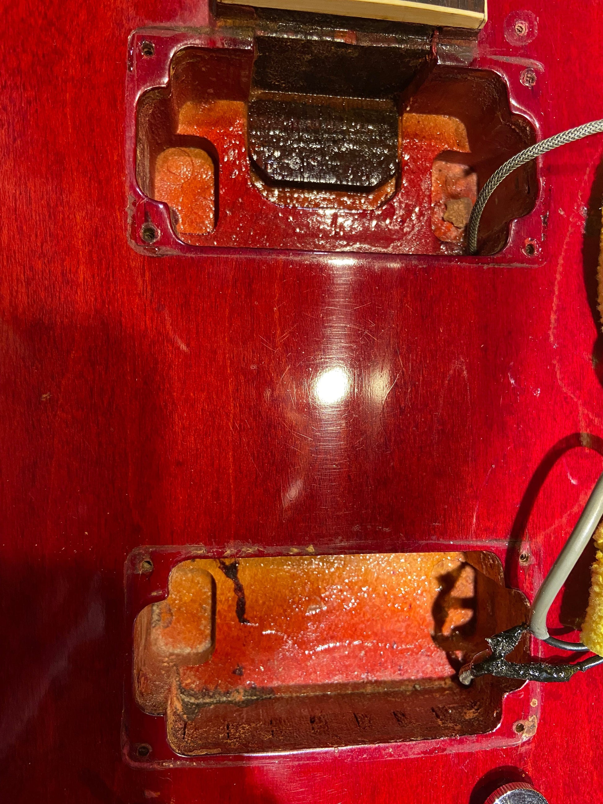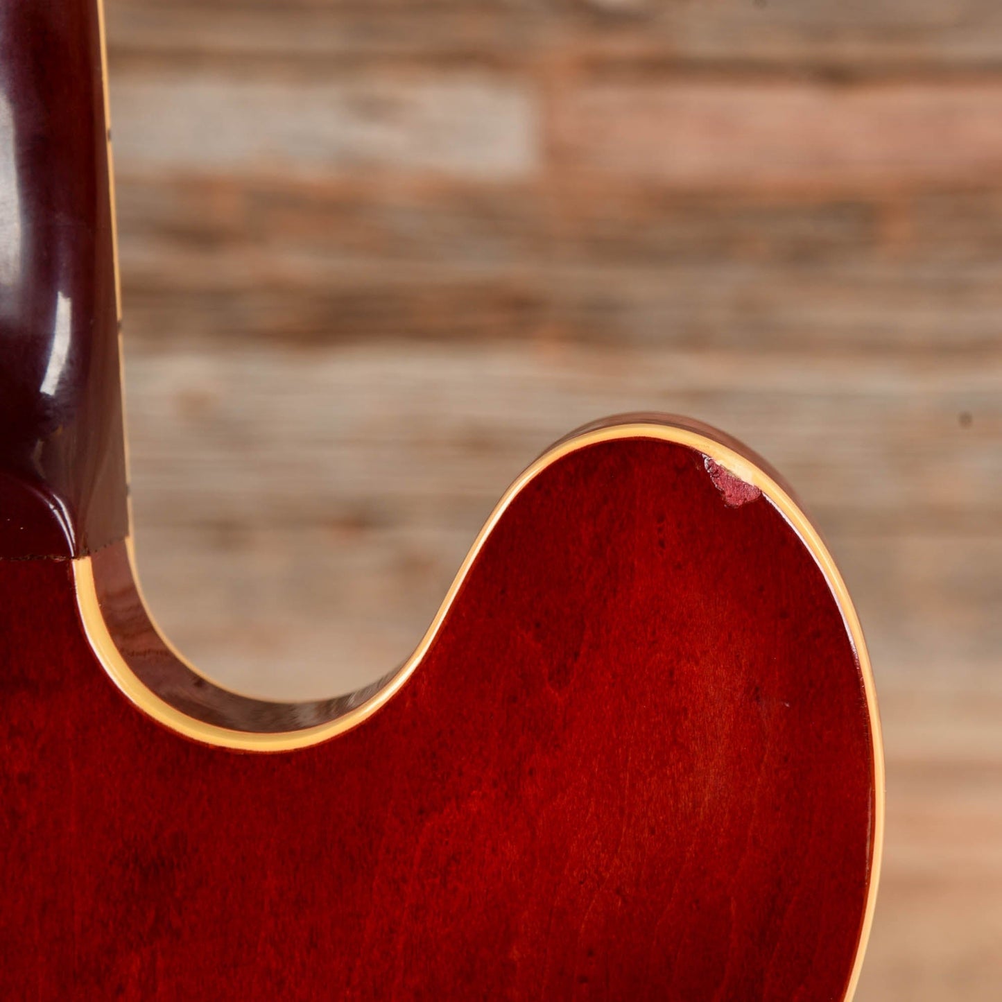 | Body Details: | 1963 ES-335 body with laminated maple back, sides, and top. There are a few plugged holes in the top and around the bottom strap button from a previously installed Bigsby. |