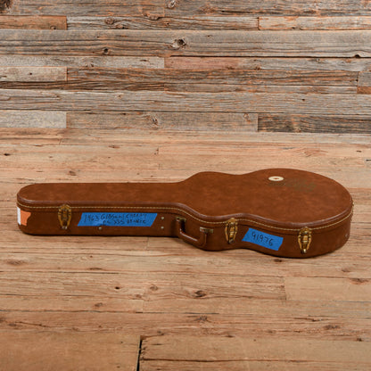 | Neck Details: | Set mahogany neck with bound Indian rosewood fingerboard and small block inlays. The neck was added to the guitar in 1968 when the original 1963 guitar was sent back to be re-necked. The neck has been refretted and the nut has been replaced. The tuner post holes have been modified to fit the current Grover Rotomatic tuners. |