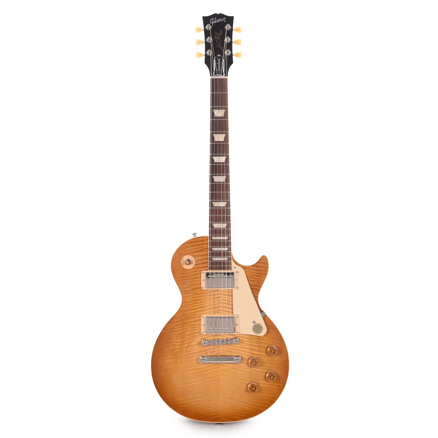 The CME Exclusive Gibson Les Paul Standard ’50s models feature a distinguished Dirty Lemon Burst inspired by the beautifully fading original cherry bursts from the late ’50s. Standard ’50s models boast a Vintage ’50s neck profile, rosewood fretboard, and gold “top hat” control knobs with pointers, plus Vintage Deluxe tuning machines with keystone buttons.