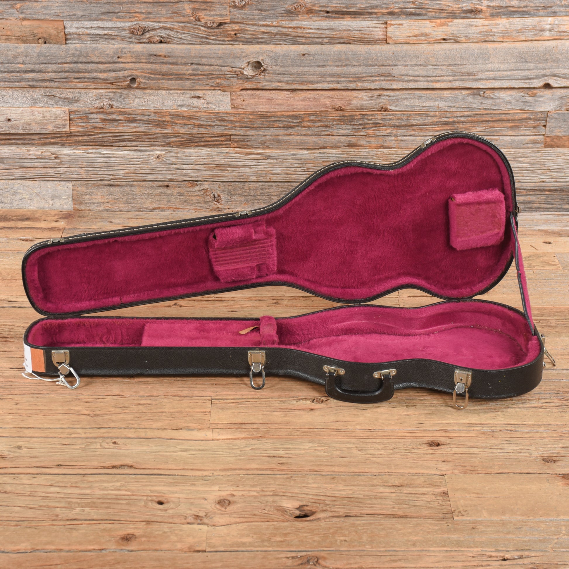 Electronics: The guitar has Gibson Patent Number Sticker pickups. The cover on the bridge pickup has been replaced. The pickups and wiring are from later 60s SG. The pots date to 1966.