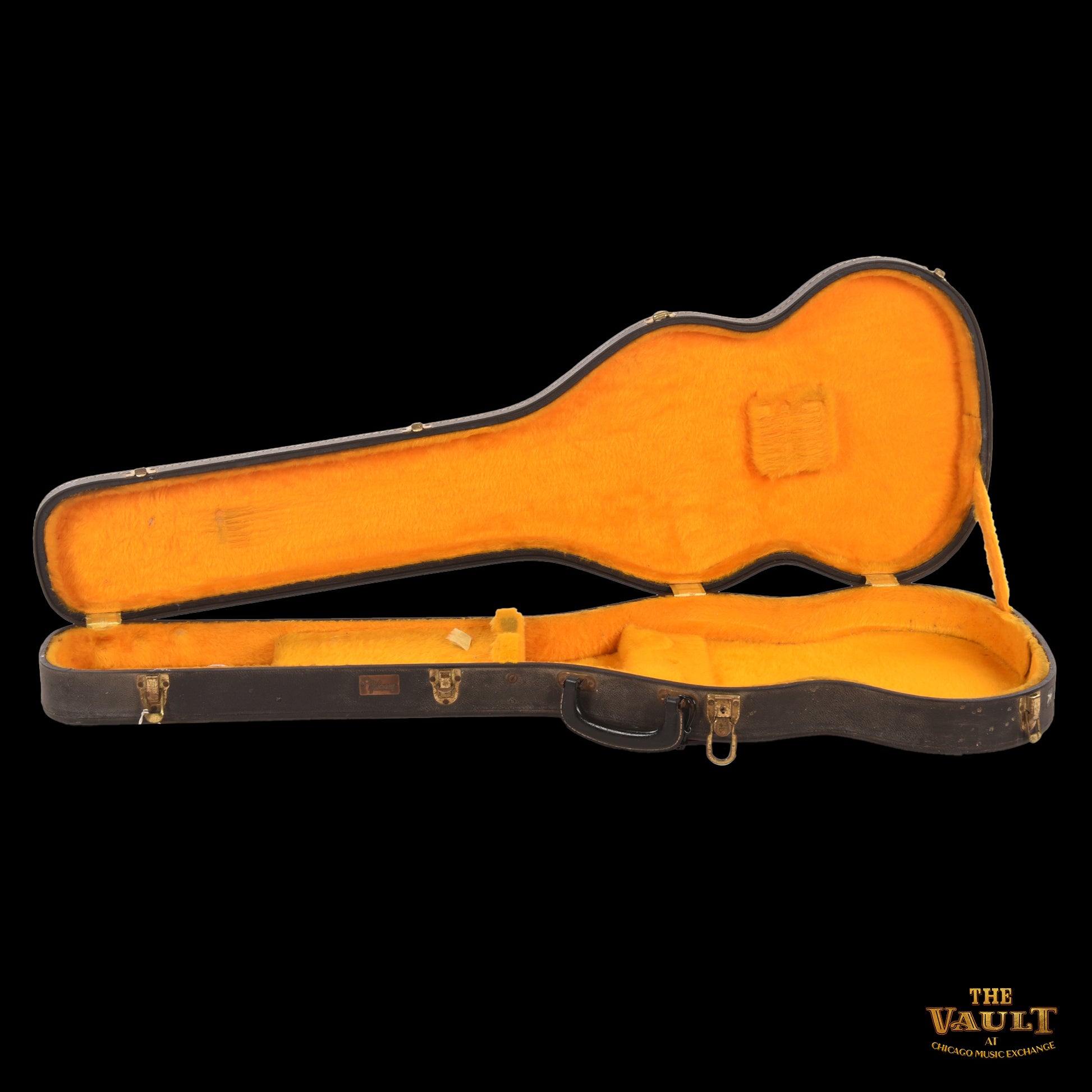 | Cosmetic Condition: | This vintage Gibson guitar has aged well and is in good condition. The finish is glossy with checking, small dings, and light surface scratching throughout. The body shows small dents and finish chips. The back of the lower horn has a small finish chip. Crack repairs are visible at the back of the headstock and at the heel of the neck; these are stable and will not affect playability. The headstock shows finish wear around its edges. The metal hardware is lightly tarnished with age. |
