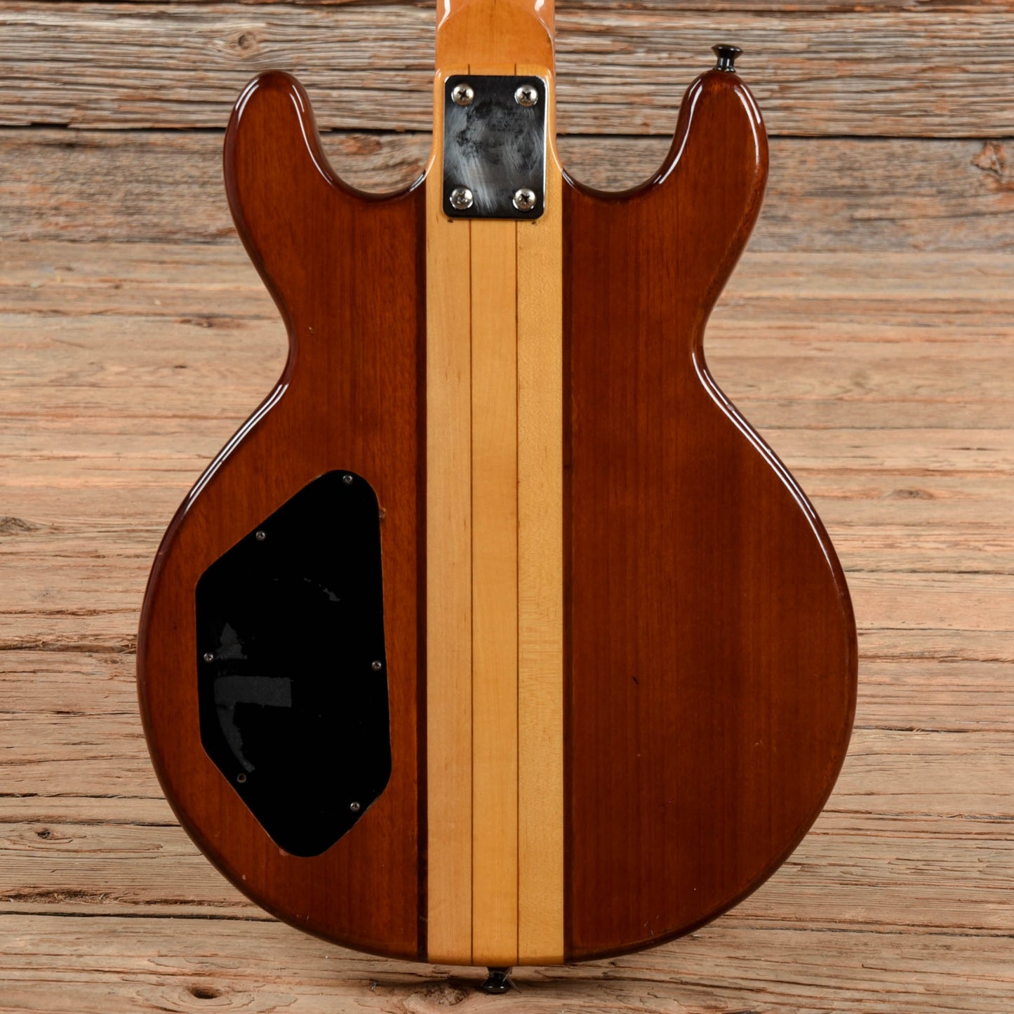 Body Details: Multi-piece body, with three piece maple center (with walnut laminations), and multi-piece mahogany wings with one piece front and back veneers.