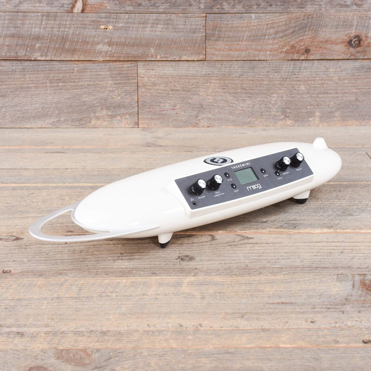 The Theremini is a re-imagination of one of the oldest electronic musical instruments in history, and Bob Moog's first love - the Theremin. Its design fuses the experience of performing with an instrument you don't actually touch, with a powerful sound engine derived from Moog's award winning synthesizer, Animoog. The Theremini guarantees immediate success to any player at any skill level, while providing new ways to experiment with music, education, and gestural control.