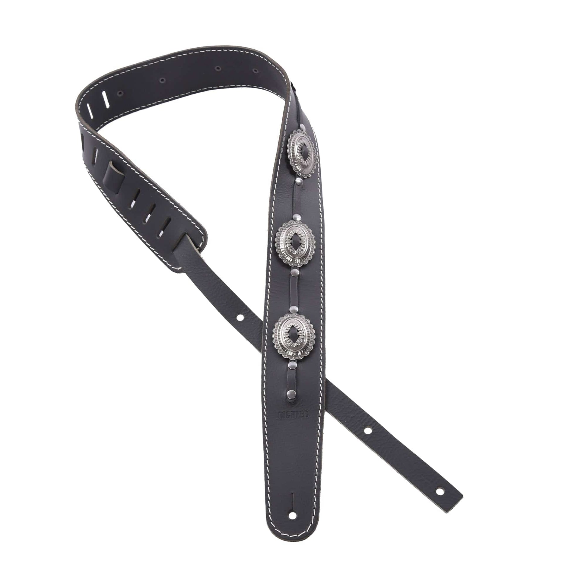 Richter Raw II Concho Guitar Strap Genuine Leather Black / Old Silver