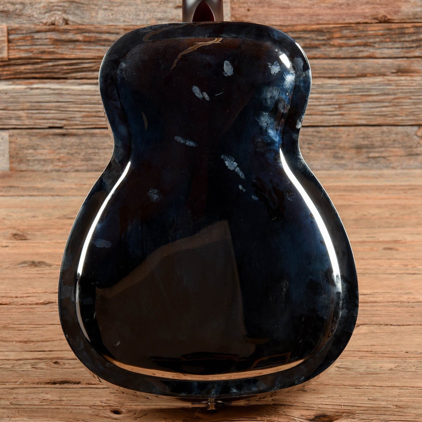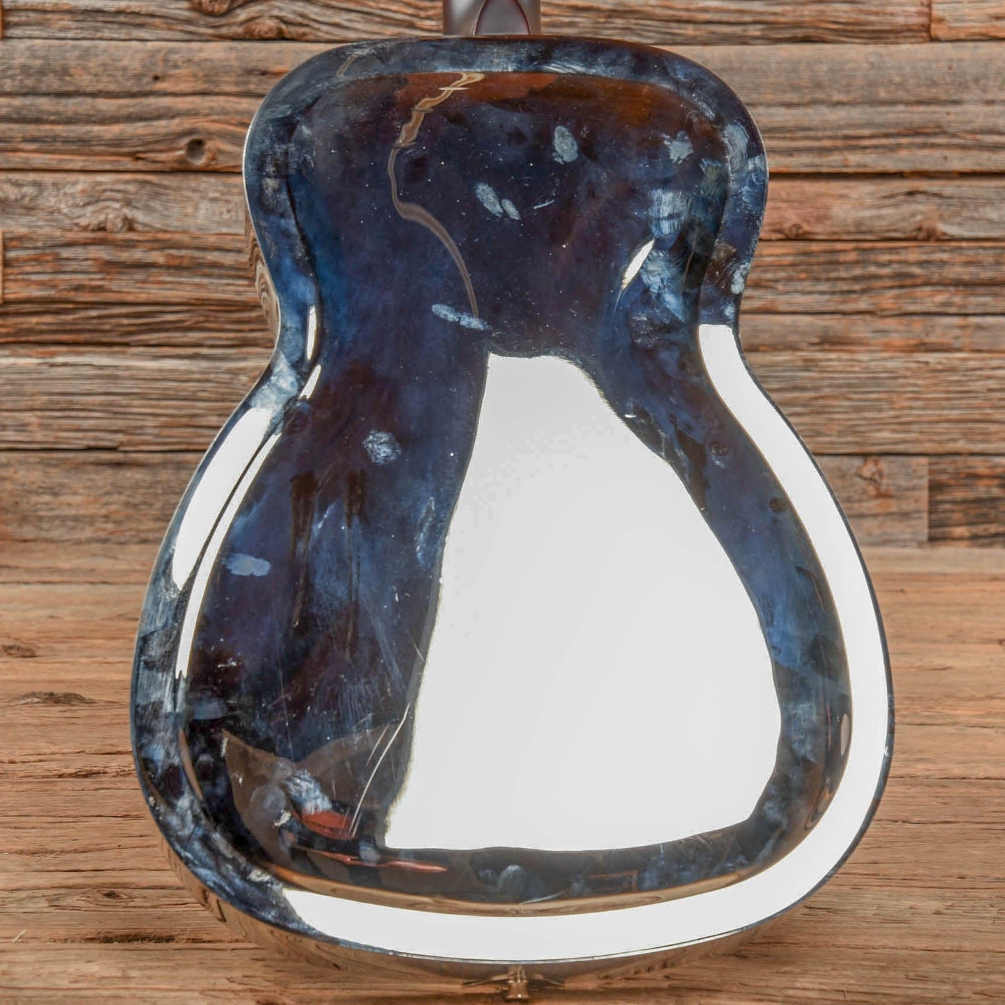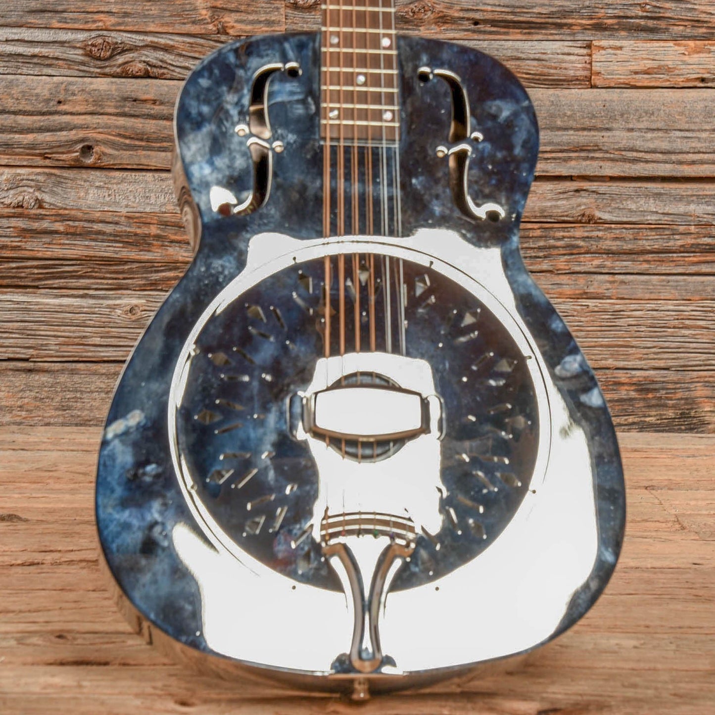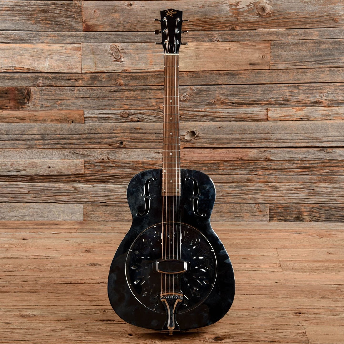 Cosmetic Condition: This used Rogue resonator guitar shows normal cosmetic wear from regular use. The metal body has tarnished in areas, and has minor blemishes throughout.
