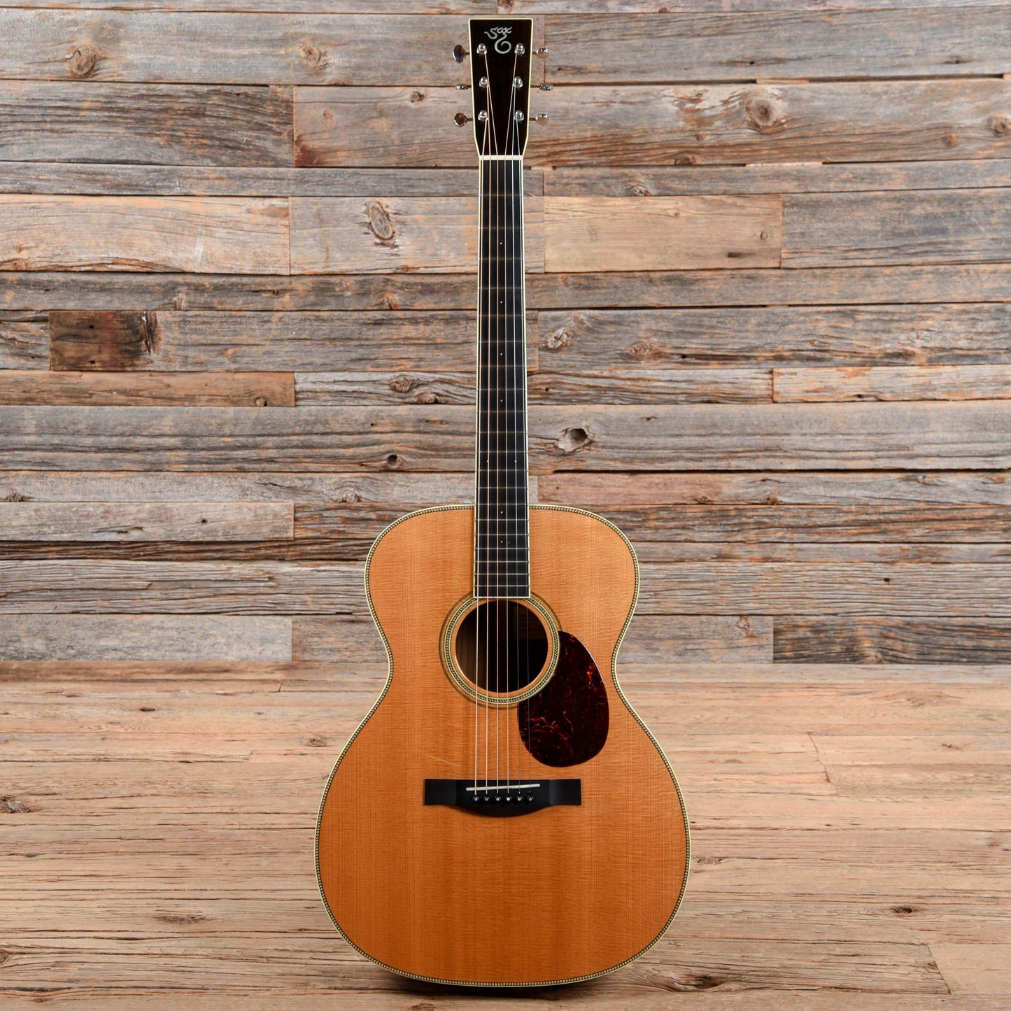 Cosmetic Condition: The guitar has medium play wear. The finish is glossy with light dents and scratches throughout. There are two noticeable scratches on the top near the bass side of the sound hole. The back of the body has very light buckle rash.