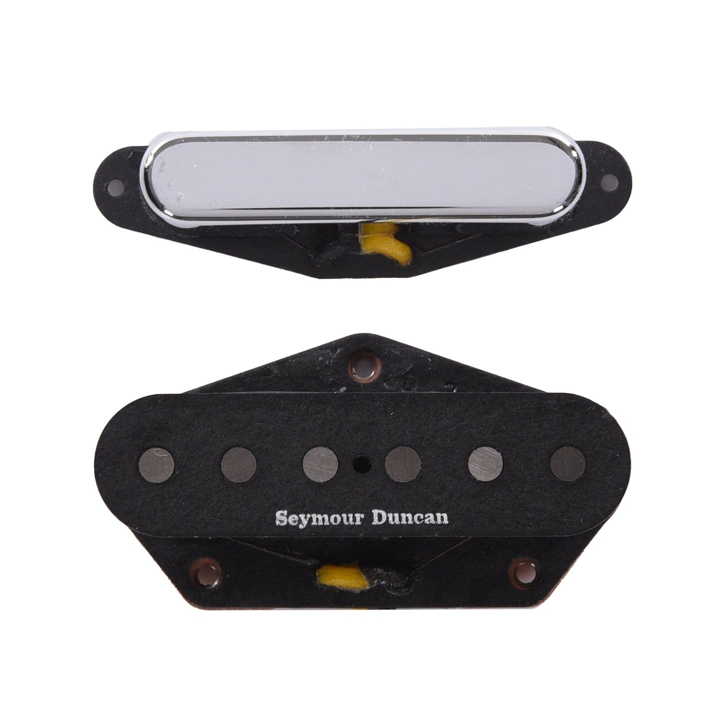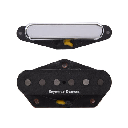 This pickup pairs perfectly with our Alnico II Pro Tele neck, which sports a deep drawn chrome-plated brass cover for a sweet, hollow tone that sounds great both clean and dirty. The authentic look and sound are brought together by waxed cloth hookup wire, Alnico 2 rod magnets, and a copper-plated steel bottom plate. Like all of our pickups, it’s potted in our wax formulation for squeal-free performance.