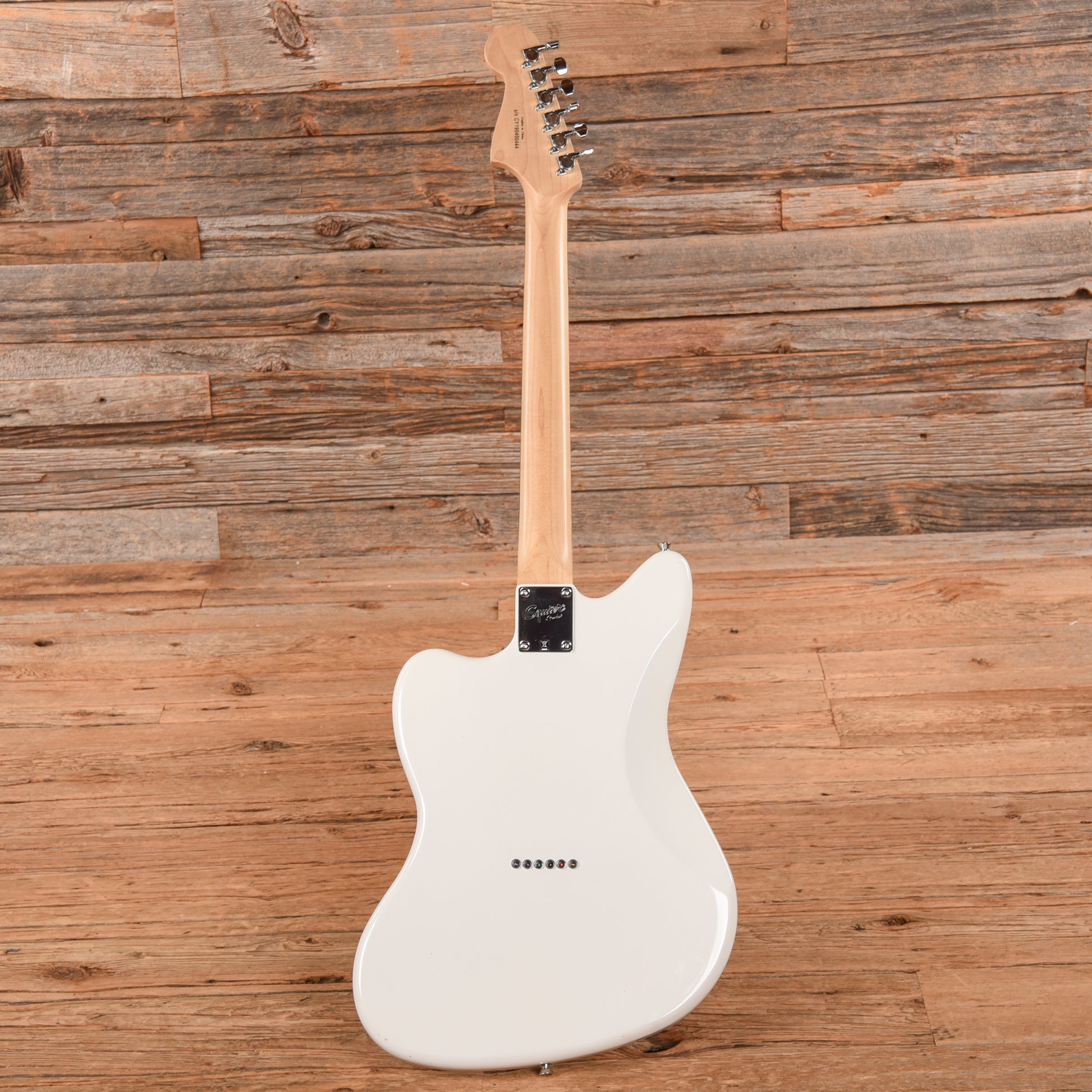 | Tech Notes: | This used Squier guitar plays well with low action and optimal neck relief. The frets are medium with minimal play wear. |