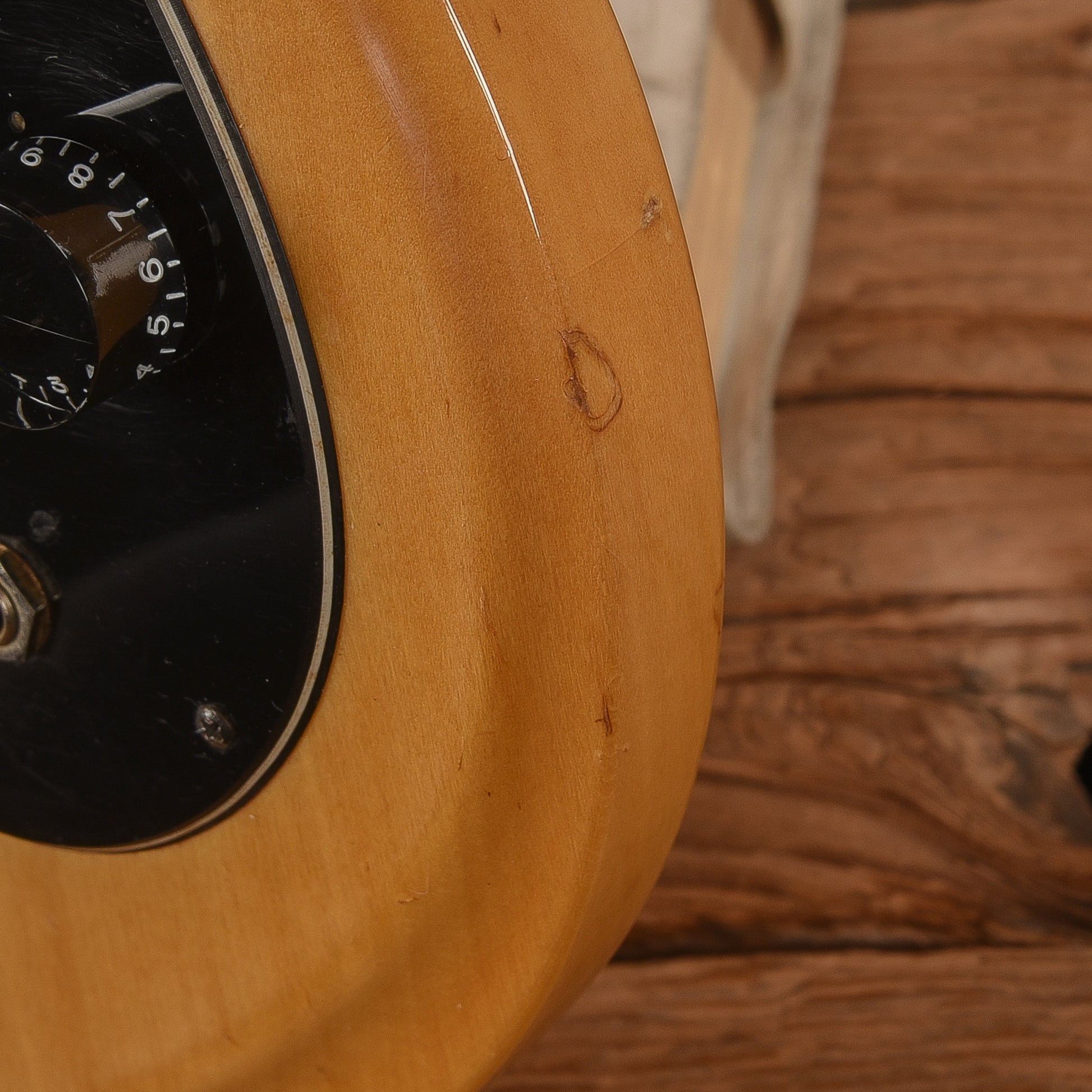 Cosmetic Condition: This guitar is in good cosmetic condition with moderate wear. There are scratches and dings throughout the glossy finish. The finish is chipped near the lower strap button. The finish is chipped in both cutaways.