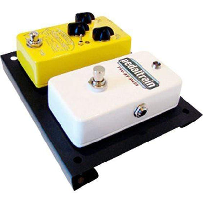 Sometimes you need a little boost. For example; on the front row you have an unusually tall pedal, and a short one right above it. Reaching that foot switch can be a precarious toe tap balancing act. Enter the Pedatrain Pedal-Booster. These handy little wedges will get the business end of your short pedal up a full one inch allowing easy access. Available is three widths to accommodate virtually any custom configuration. They can be fastened with the included Hook-and-loop with adhesive backing, or for a more permanent application use the provided screws. Folded steel construction, durable powder coat finish.