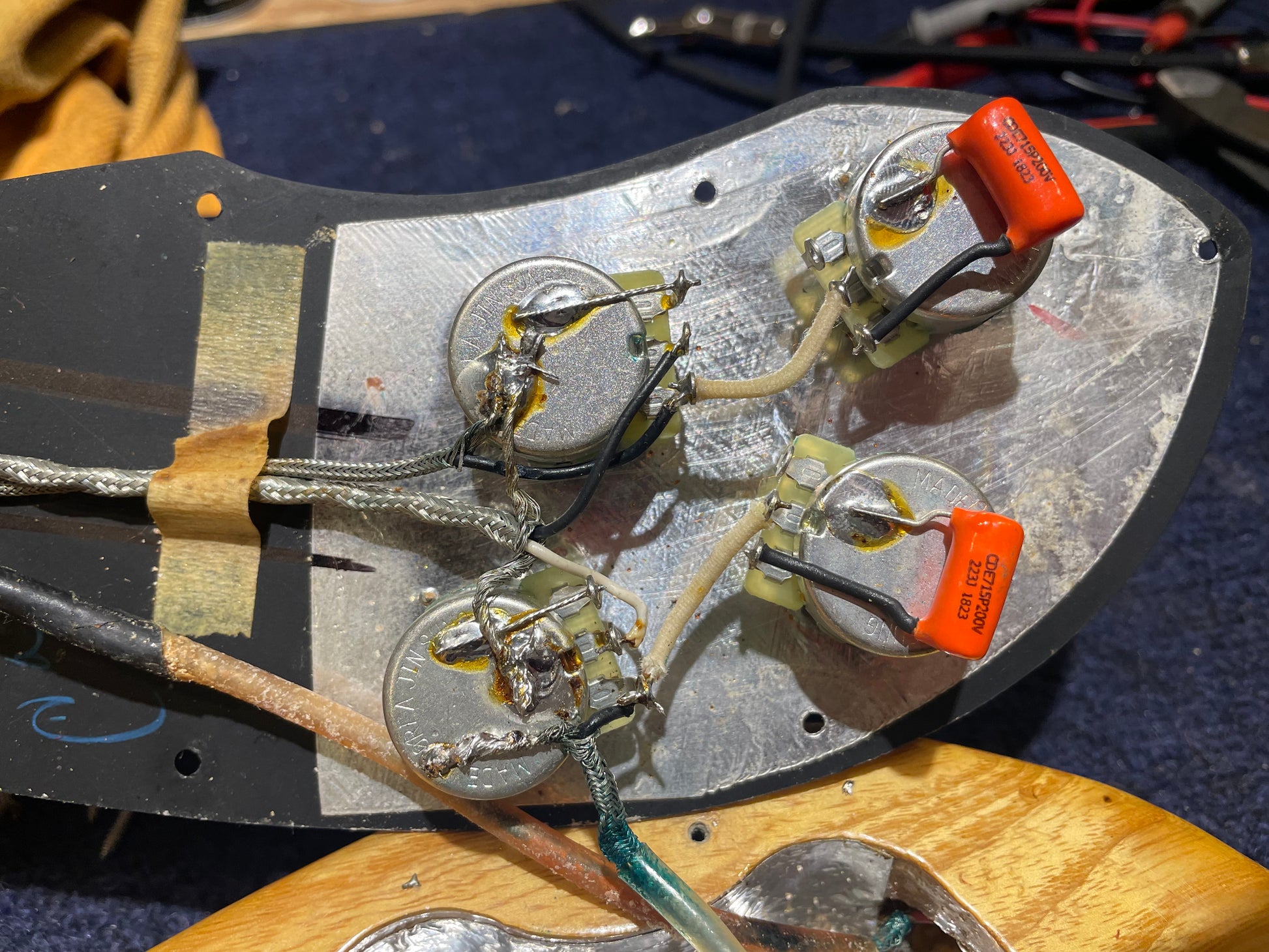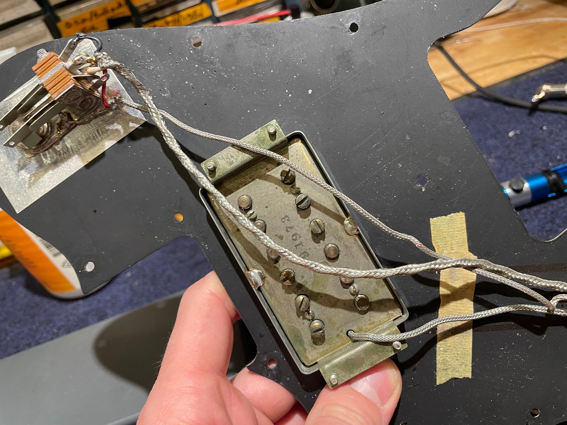 | Electronics: | Original Wide Range humbucker neck pickup and original single coil bridge pickup; the pots and caps have all been replaced. |