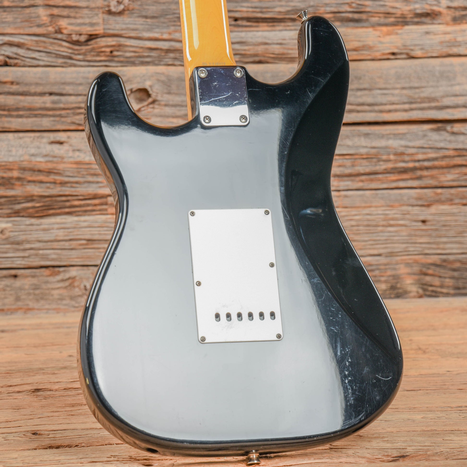 | Tech Notes: | This Strat plays well with low action and optimal neck relief. The frets are tall and show light play wear. It has been properly setup and intonated with 10 gauge strings in standard tuning. |