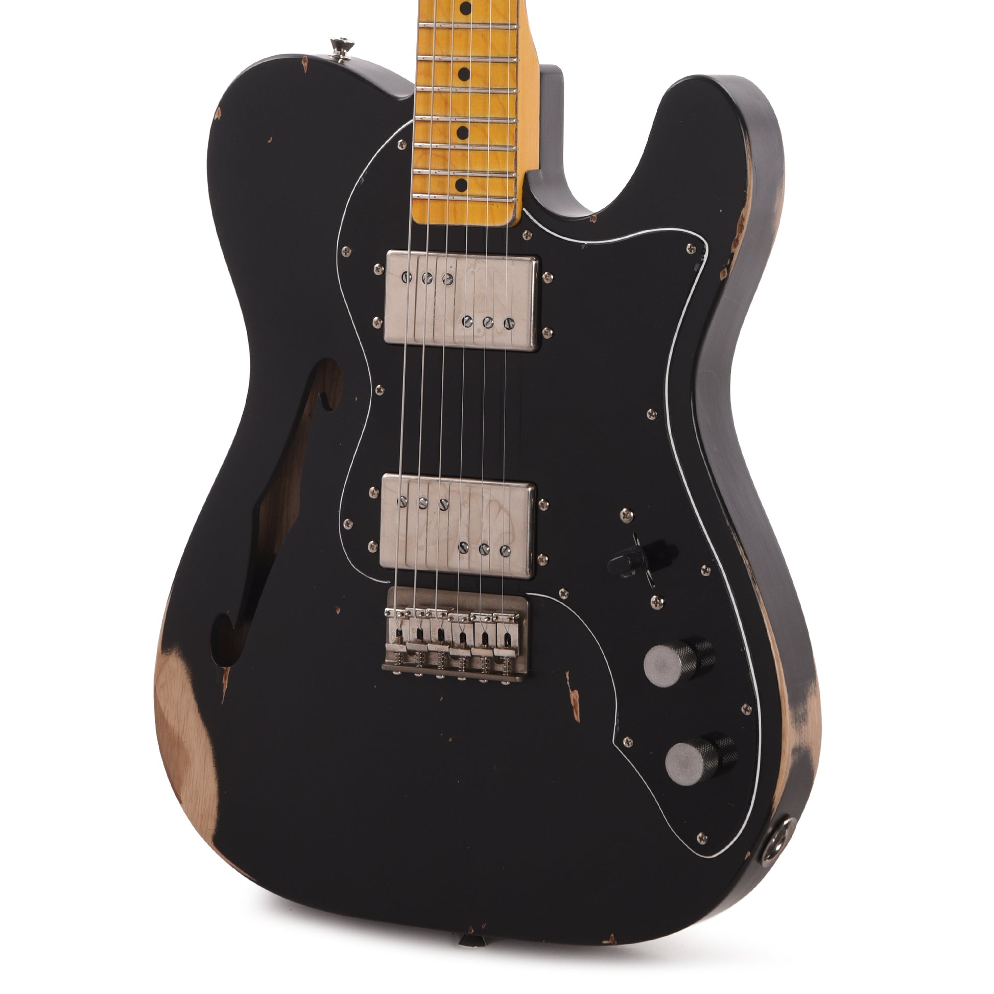 Our T72TL is an iteration of the T69TL that maintains the semi-hollow body, while introducing two wide-range humbuckers and an S Model hardtail bridge. These pickups offer more energy, bigger sound, and reduced hum as compared to the T69TL.