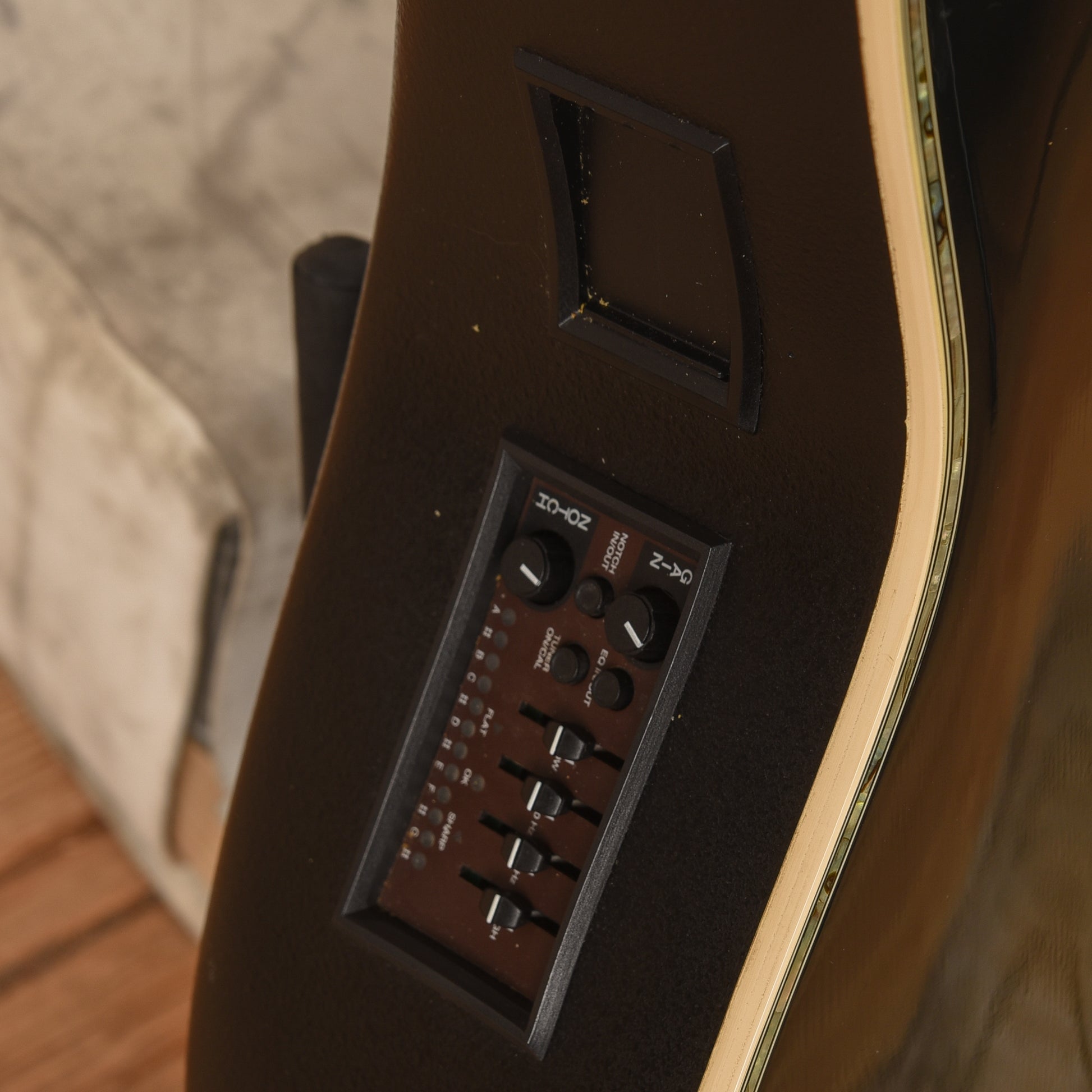 | Tech Notes: | The guitar plays well with low action, and the frets show mild play wear. |