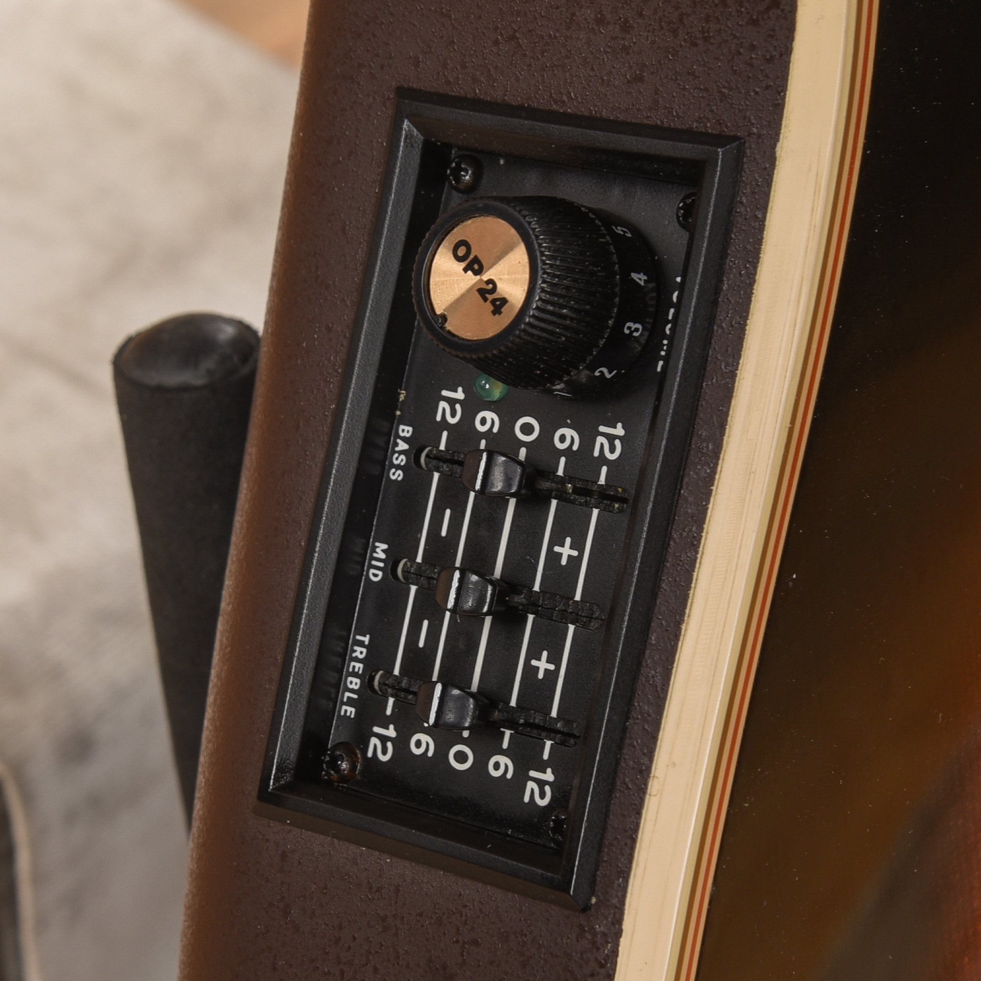 | Tech Notes: | This used Ovation guitar plays well with low action and optimal neck relief. The frets are wide and tall with minor play wear. |
