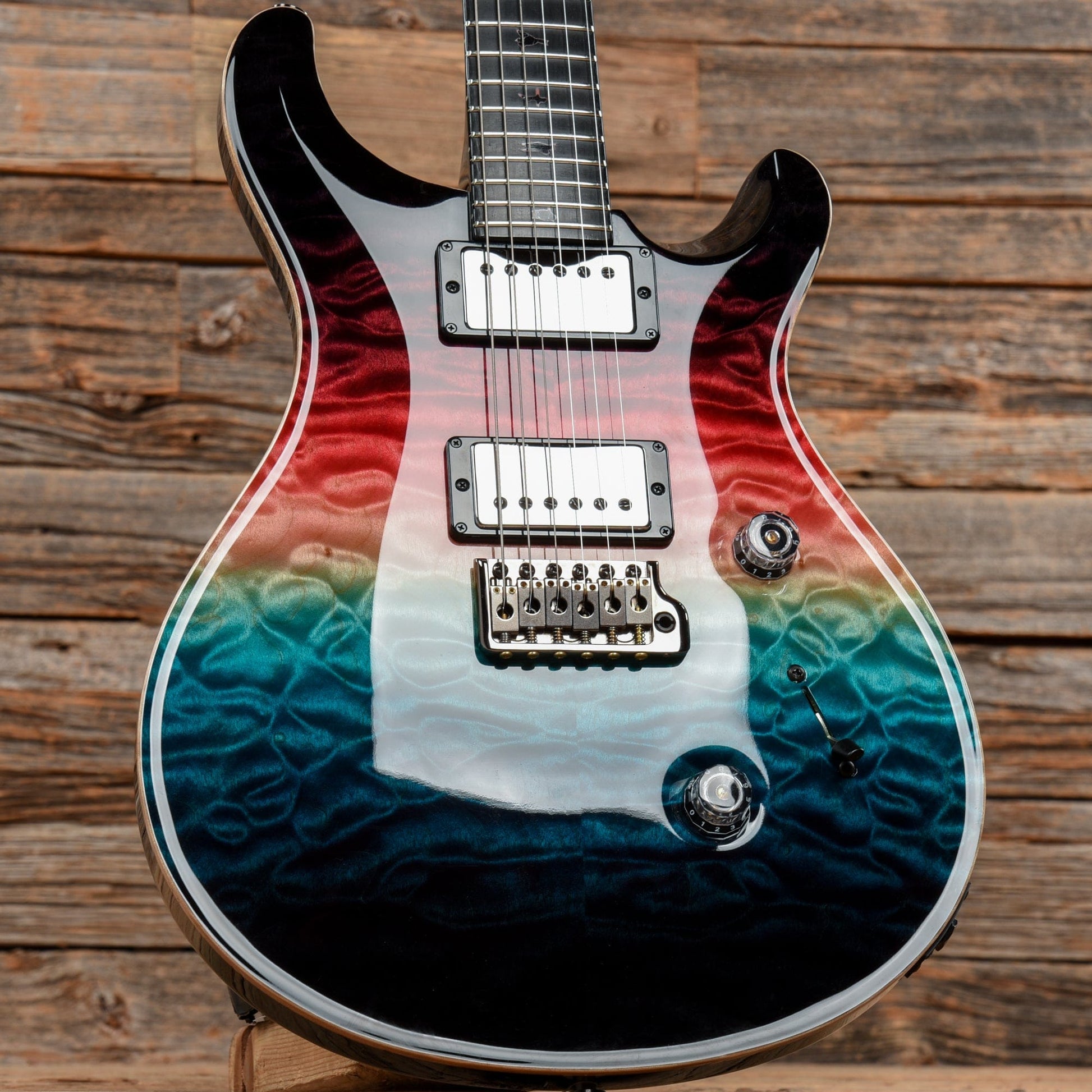 Neck Details: One-piece curly maple neck with unbound ebony fingerboard and quilted maple headstock overlay.