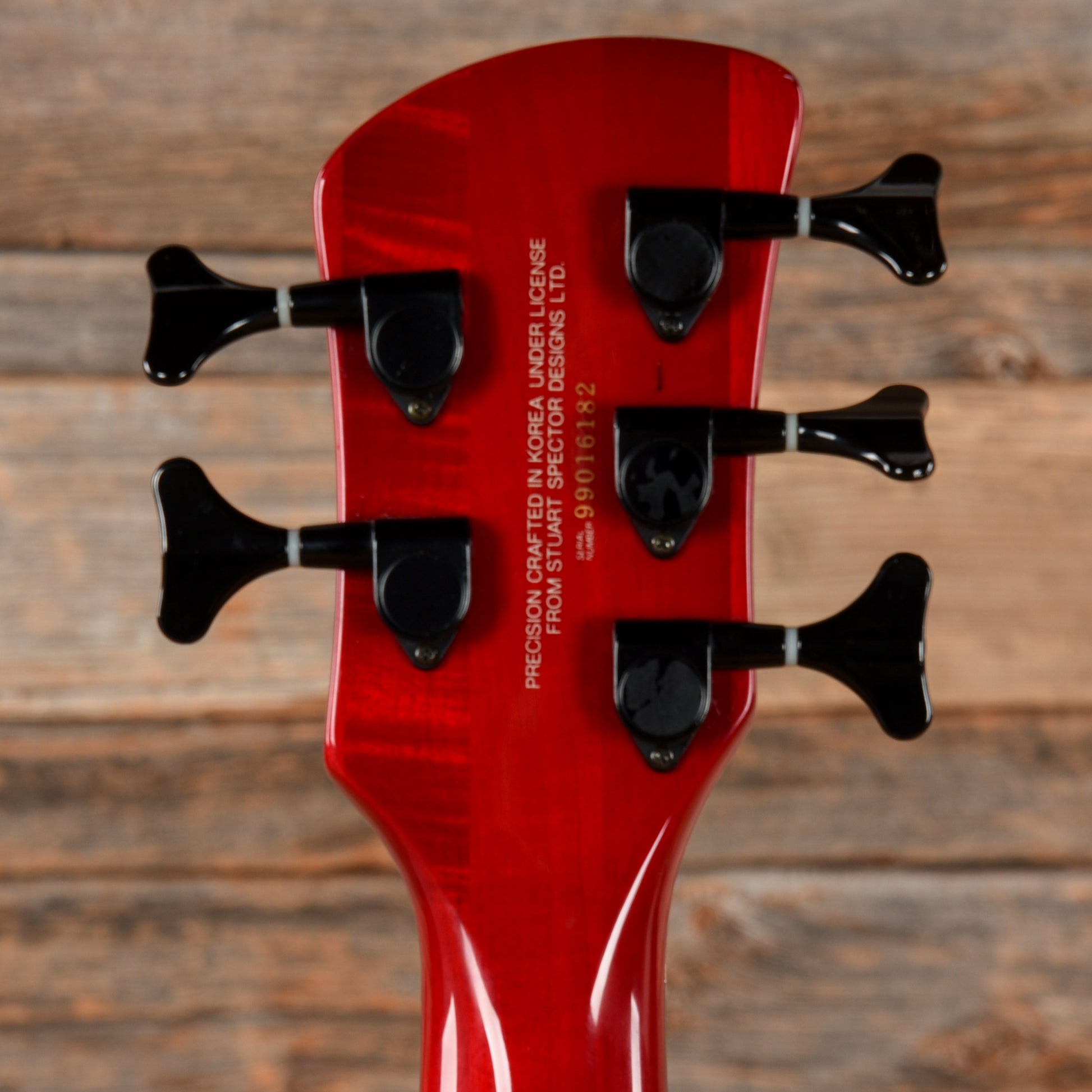 | Tech Notes: | This bass plays well with low action and optimal neck relief. The frets are high with minimal wear. |