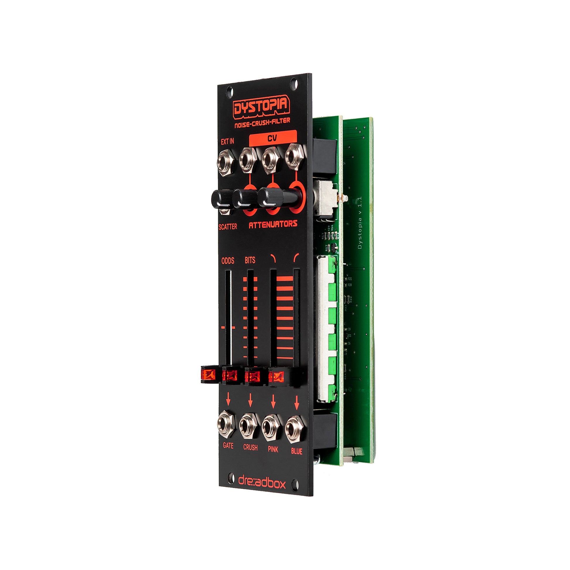 Dreadbox Dystopia Noise Generator, Bit Crusher, & Dual Filter Eurorack Module Black Light