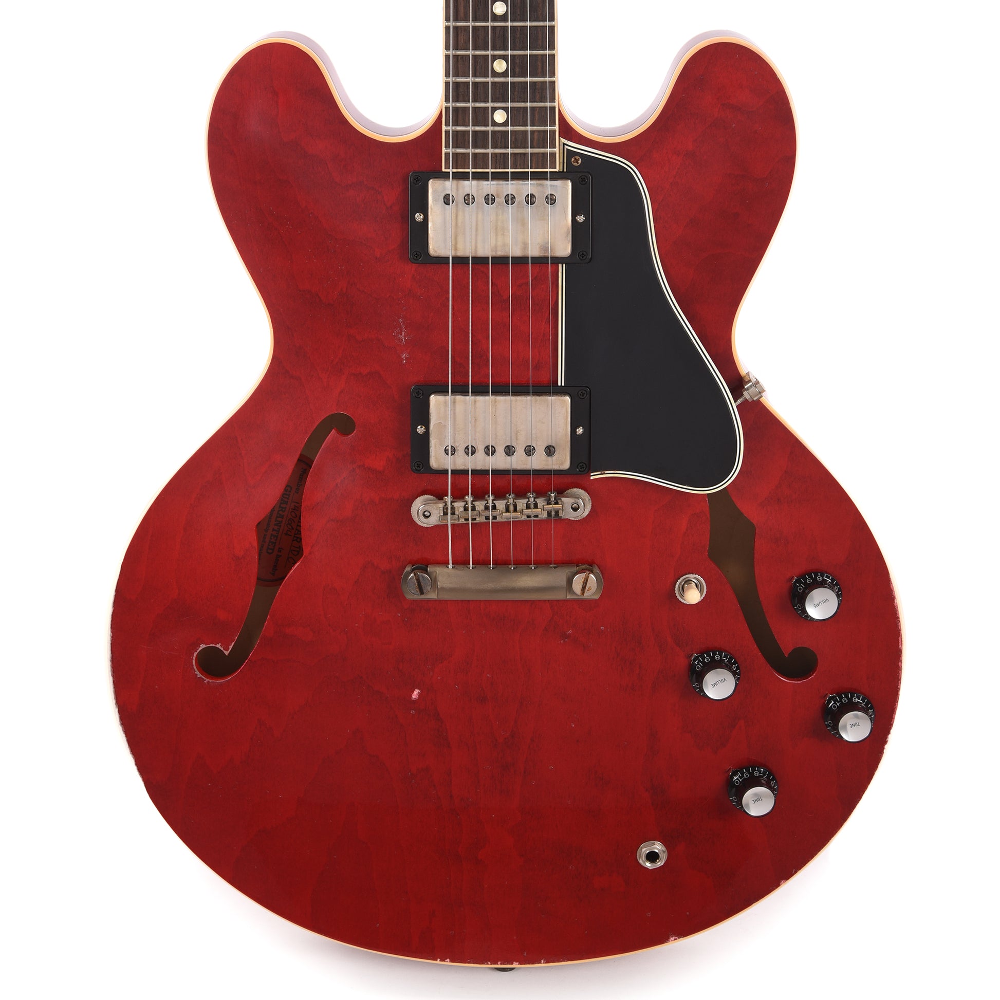 The Historic Reissue ES-335 is back and better than ever thanks to a year of studying, scanning, and listening to original ES™ examples. The expert craftspeople at Gibson Custom Shop have rendered every contour, profile, inlay and color of the priceless vintage models in magnificent detail. The result is a playing and ownership experience that will keep you coming back for more. The 1961 Reissue models utilize rounded cutaways, SlimTaper™ neck profiles scanned from originals, dot inlays, and vintage-replica parts. This model features Heavy Aging by the skilled artisans of the Murphy Lab. The Murphy Lab Heavy Aged finish treatment, paired with heavily aged hardware, simulates decades of heavy play wear, giving it the unique character, vibe, and feel of an original example from the Gibson Golden Era.