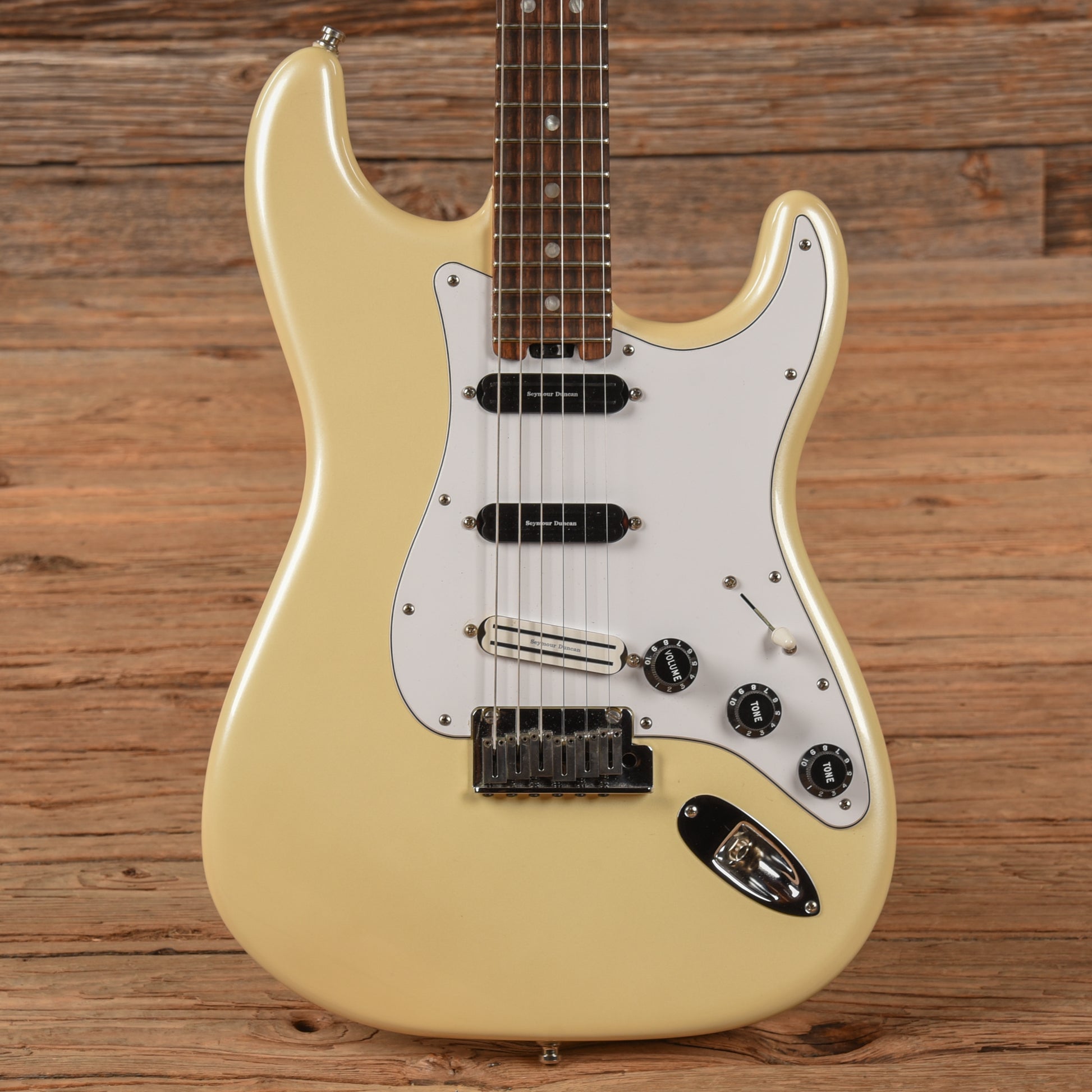 | Modifications/Repairs: | -The pickups have been replaced with Seymour Duncan Hot Rails in the neck and bridge position and a Seymour Duncan Cool Rail in the middle position. -The pickup selector has been replaced with a 3 way switch. -The guitar has accordingly been rewired. -The fingerboard has been scalloped at every fret. |