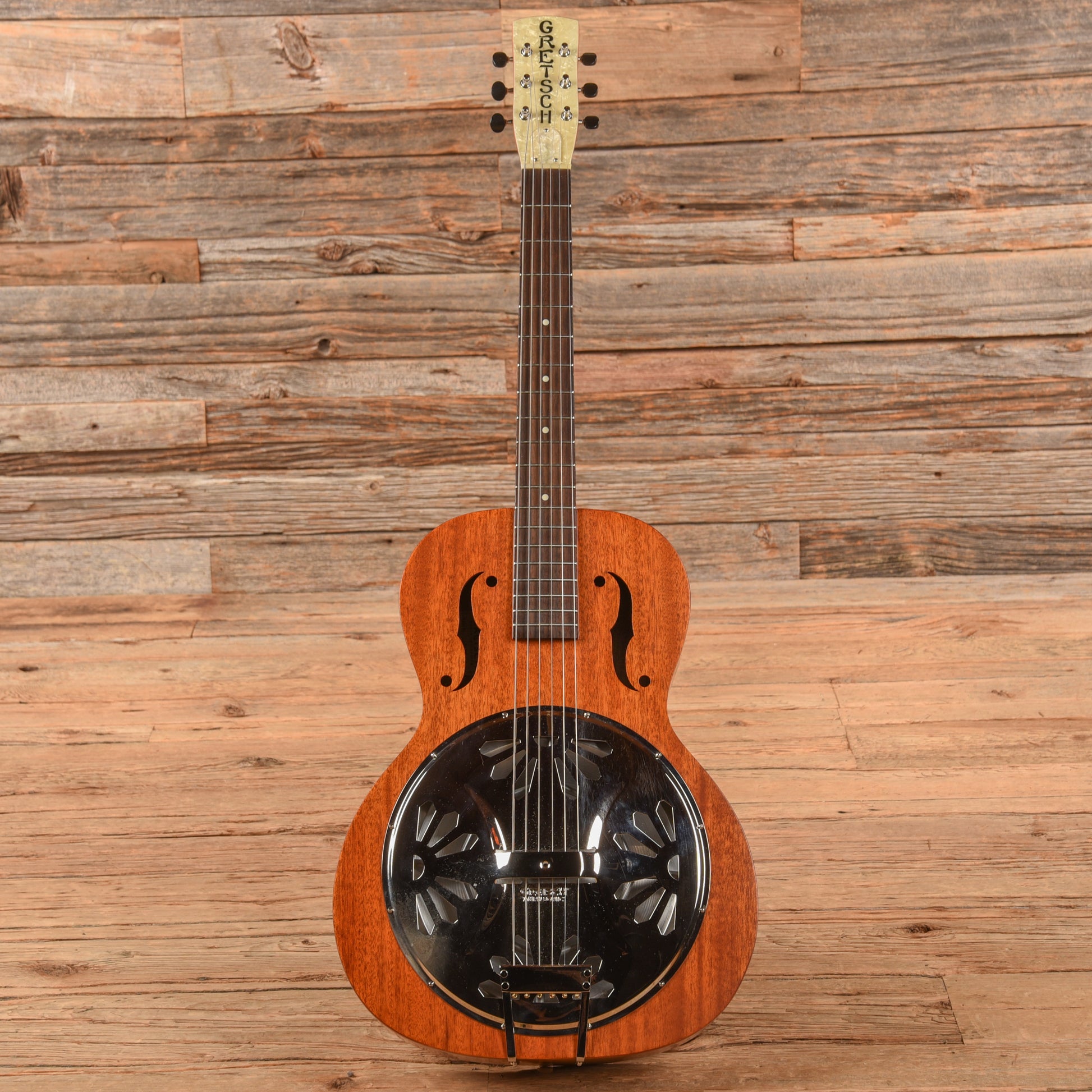 | Tech Notes: | This used Gretsch guitar plays well with low action and optimal neck relief. The frets are wide and tall with minor play wear. |
