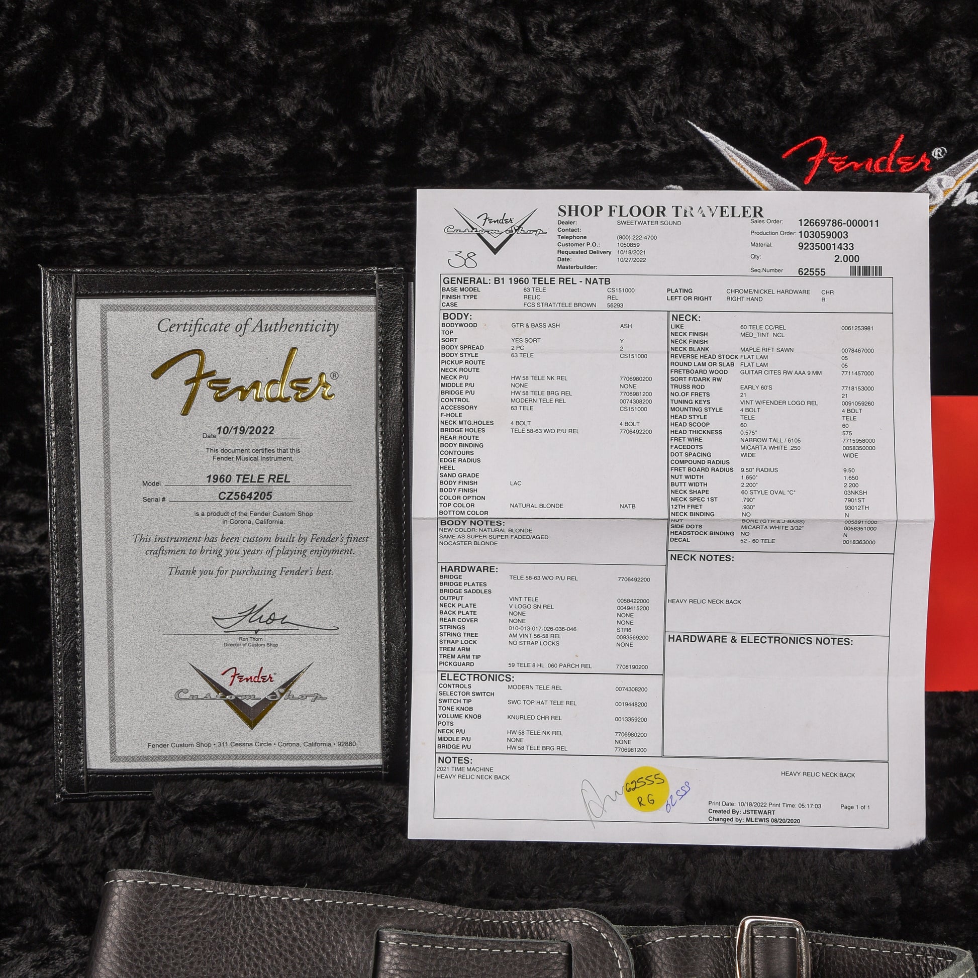 | Tech Notes: | This Telecaster plays well with low action. The frets are tall and show light wear. |