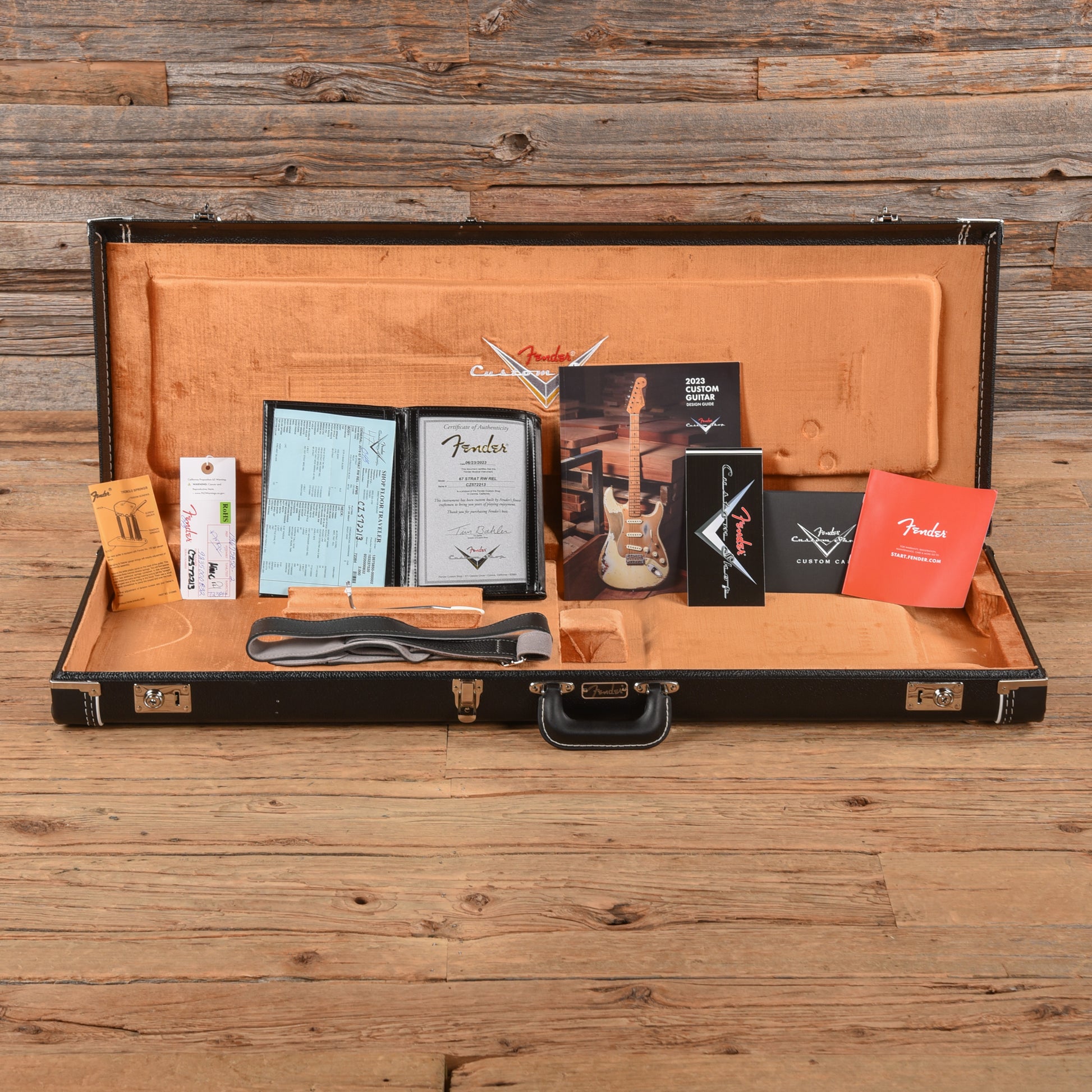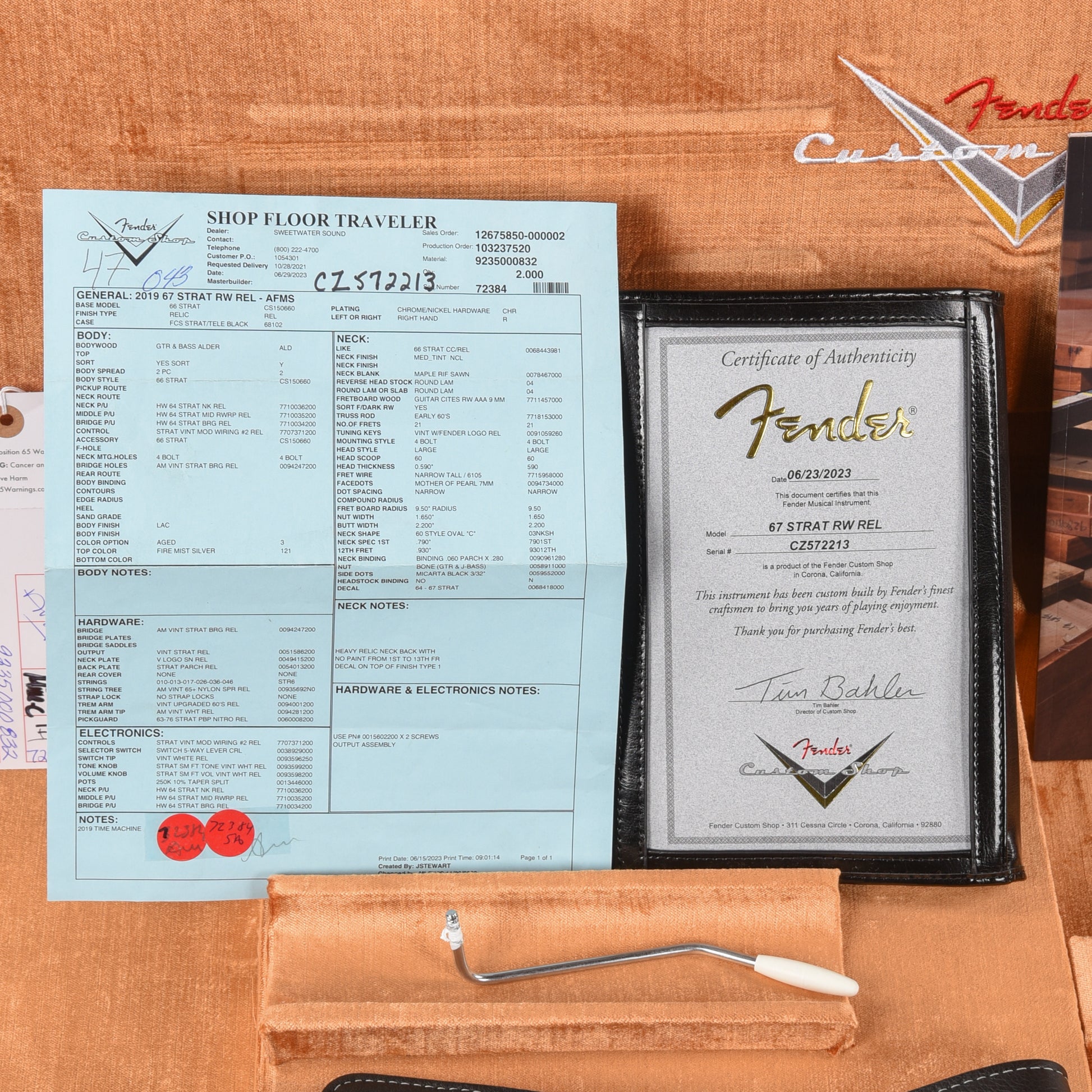 | Tech Notes: | This Stratocaster plays well with low action. The frets are tall and show no wear. |