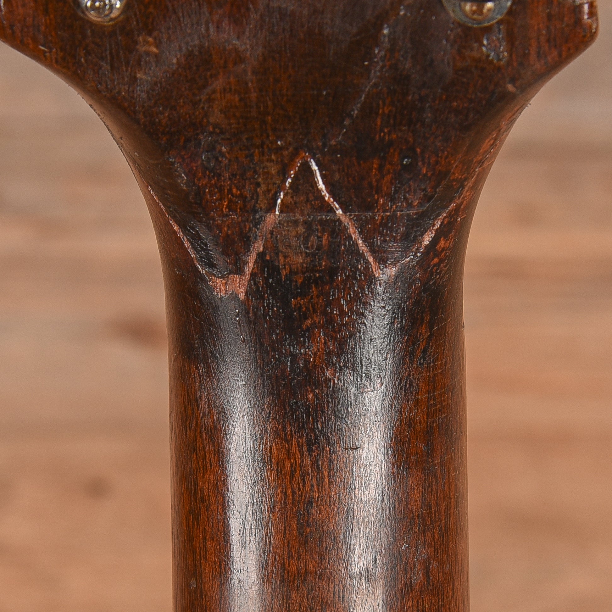 Cosmetic Condition: This vintage Gibson guitar shows heavy aging, with significant checking on the finish. There are repaired cracks in the top, as well as a repaired headstock break which has been touched up. The back of the neck has various nicks and dings.