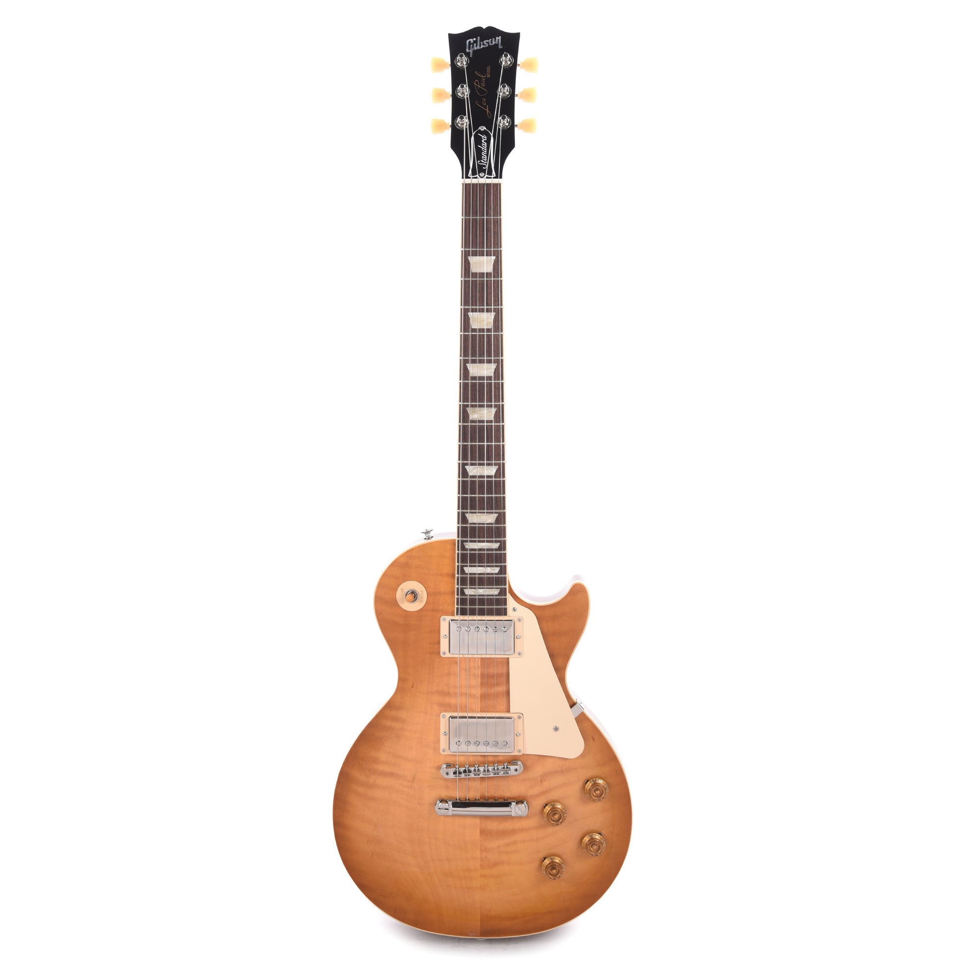 The CME Exclusive Gibson Les Paul Standard ’50s models feature a distinguished Dirty Lemon Burst inspired by the beautifully fading original cherry bursts from the late ’50s. Standard ’50s models boast a Vintage ’50s neck profile, rosewood fretboard, and gold “top hat” control knobs with pointers, plus Vintage Deluxe tuning machines with keystone buttons.