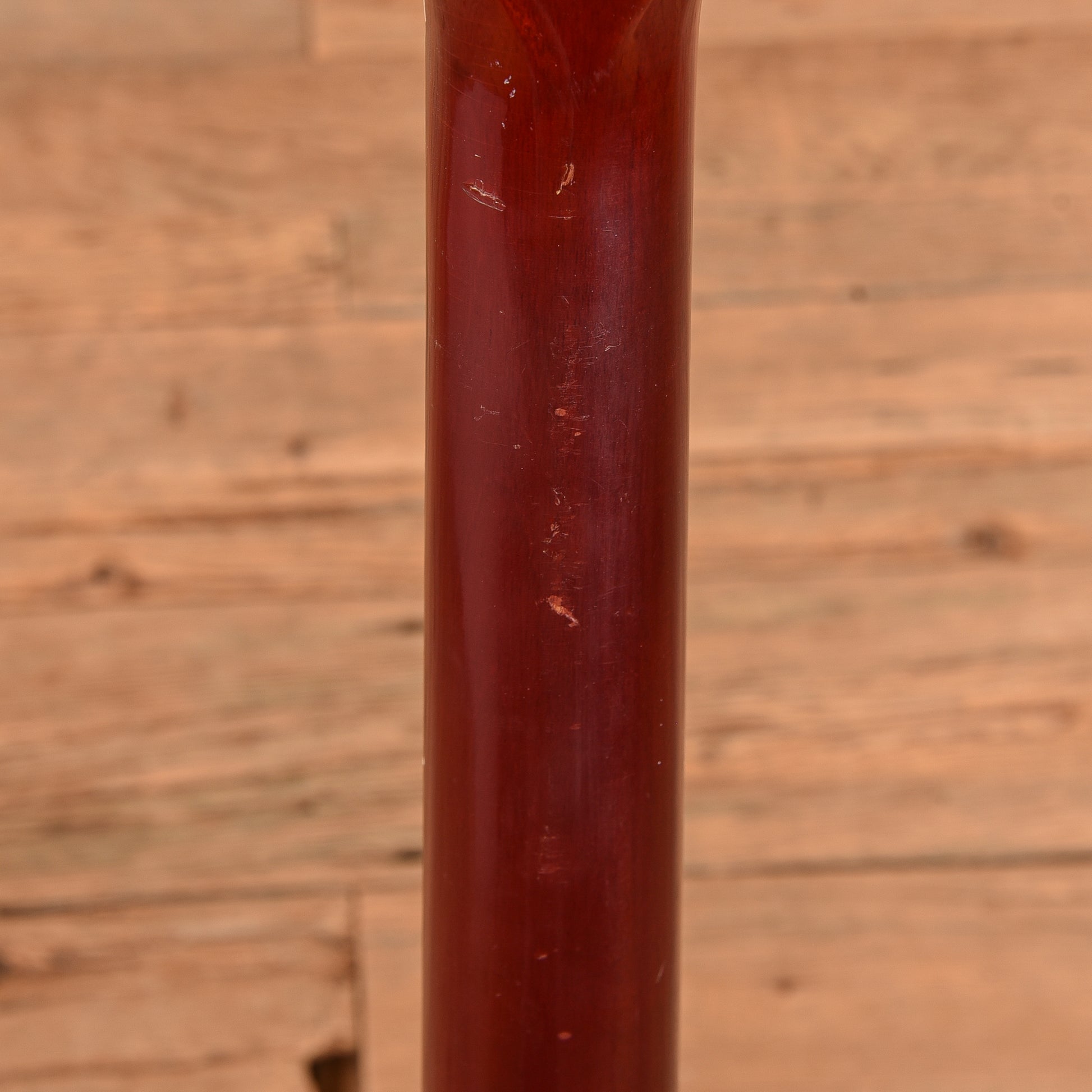 | Modifications/Repairs: | -The bridge has been reglued. -The saddle has been replaced with a bone saddle. -An undersaddle pickup had previously been installed and removed; the endpin was drilled out and then redoweled with a new strap button installed in its place. -A strap button has been installed on the heel of the neck. |