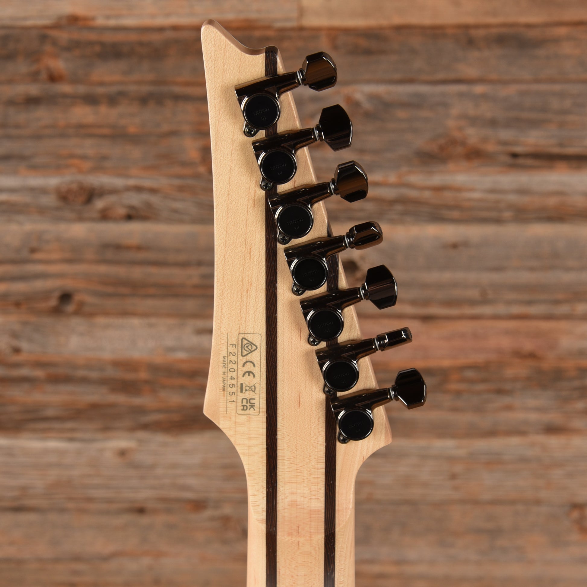 | Electronics: | Two DiMarzio Fusion Edge 7 humbuckers with a three-way switch and master volume and tone controls. |