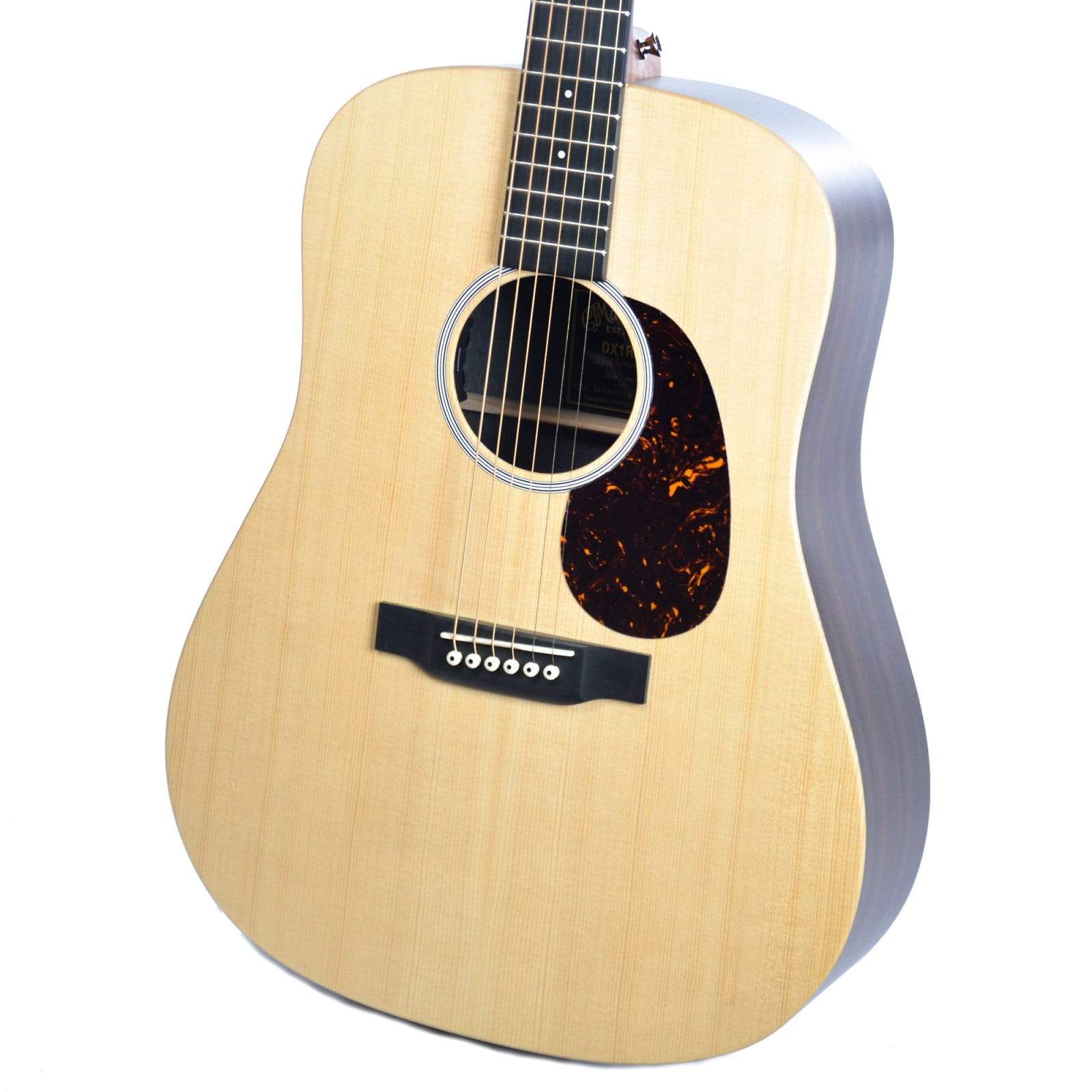 The DX1RAE acoustic-electric guitar features a D-14 platform and a Dreadnought body design that produces a full, sustaining sound. The East Indian rosewood-grained laminate (HPL) back and sides give it a rich look, paired with a solid Sitka spruce top. The DX1RAE features Fishman electronics and a non-cutaway style body. The result: a great-sounding, great-playing guitar that is environmentally friendly and priced within reach of every aspiring guitarist.