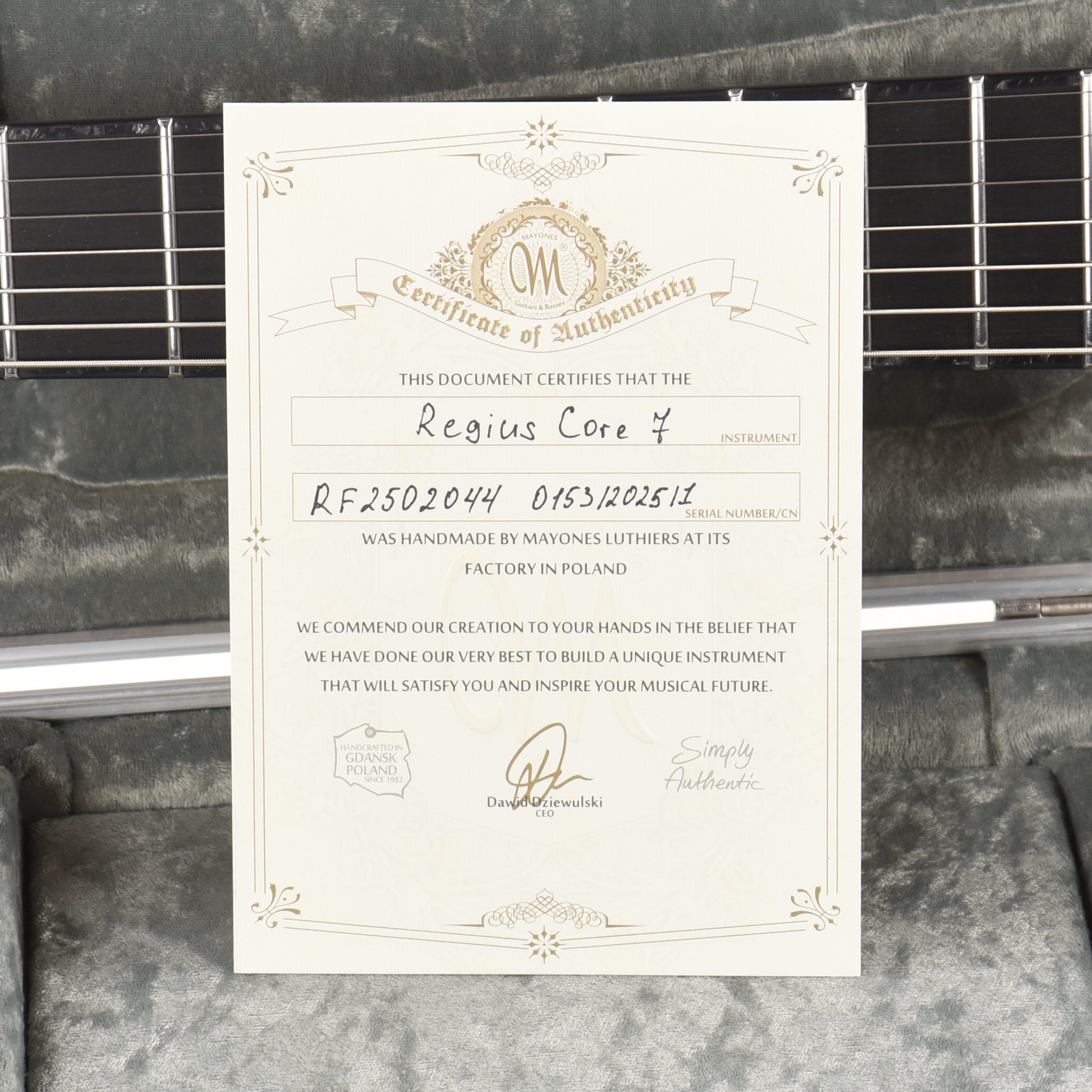 | Headstock Inlay/Decal: | Mayones Logo w/3-Ply Black ABS + Black Pearloid |