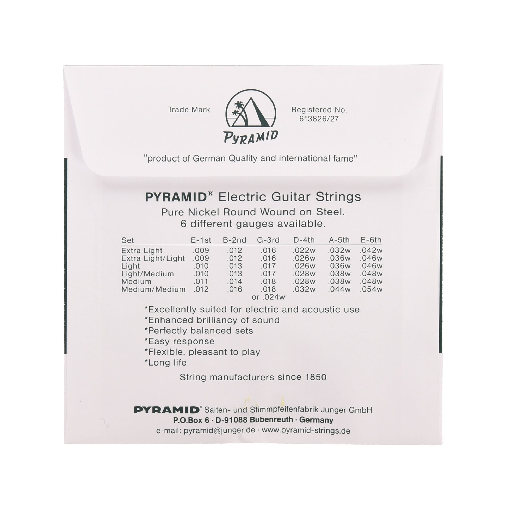Pyramid medium/heavy electric round wound strings.