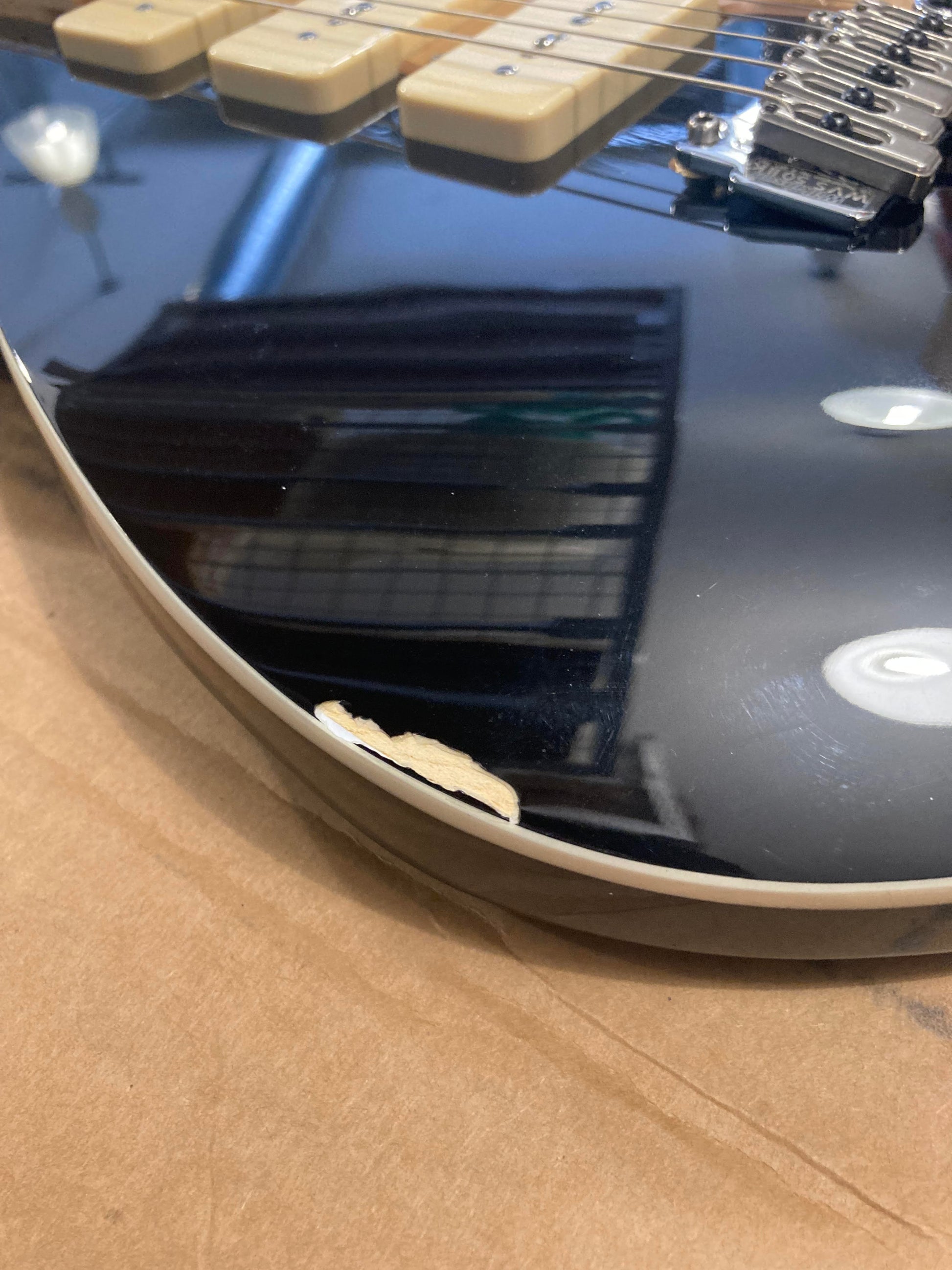 | Cosmetic Condition: | This guitar is in good cosmetic condition. There is a chip in the finish on the bass side lower bout. There are light scratches throughout the glossy finish. |