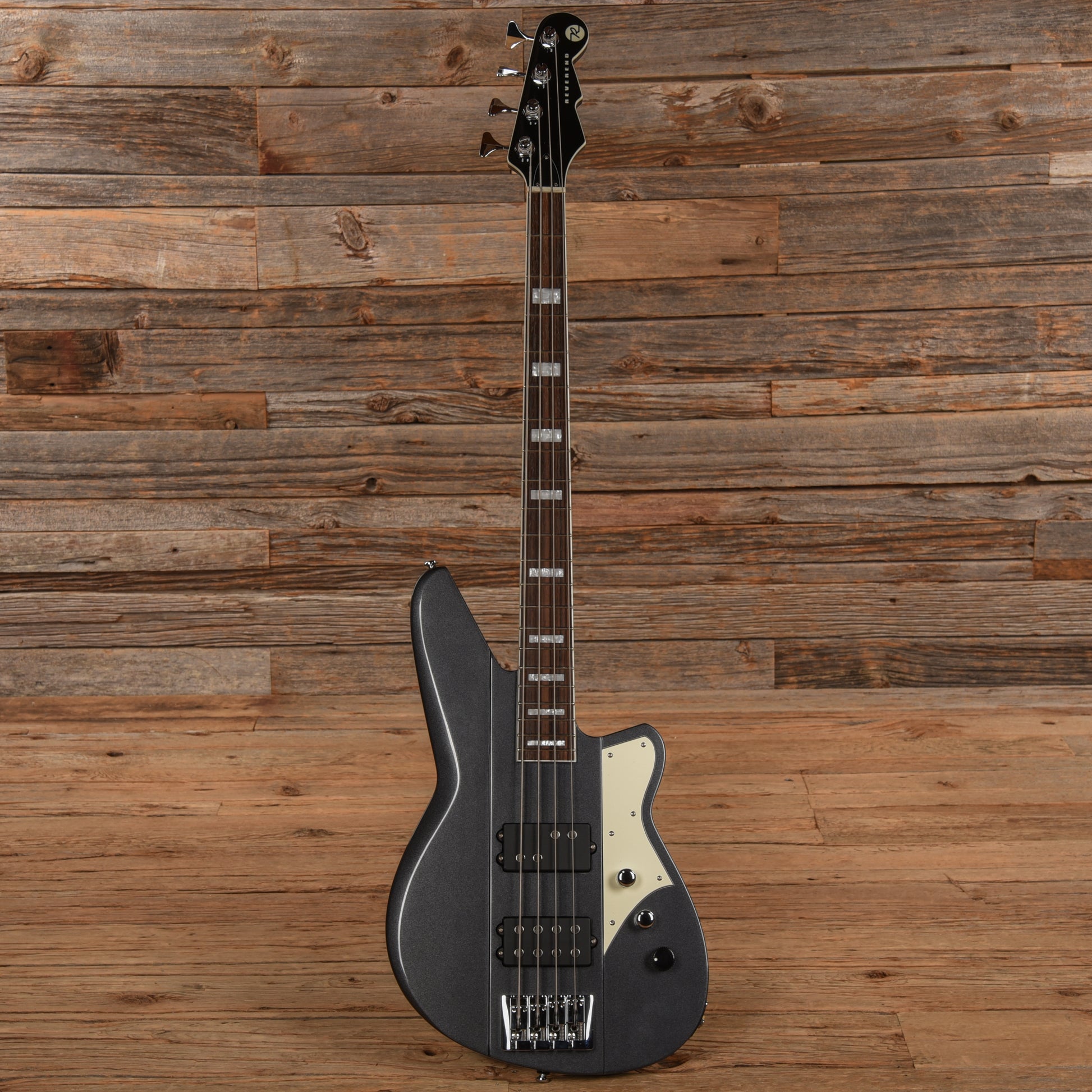 | Tech Notes: | This used Reverend bass plays well with low action and optimal neck relief. The frets are wide and tall with minor play wear. |