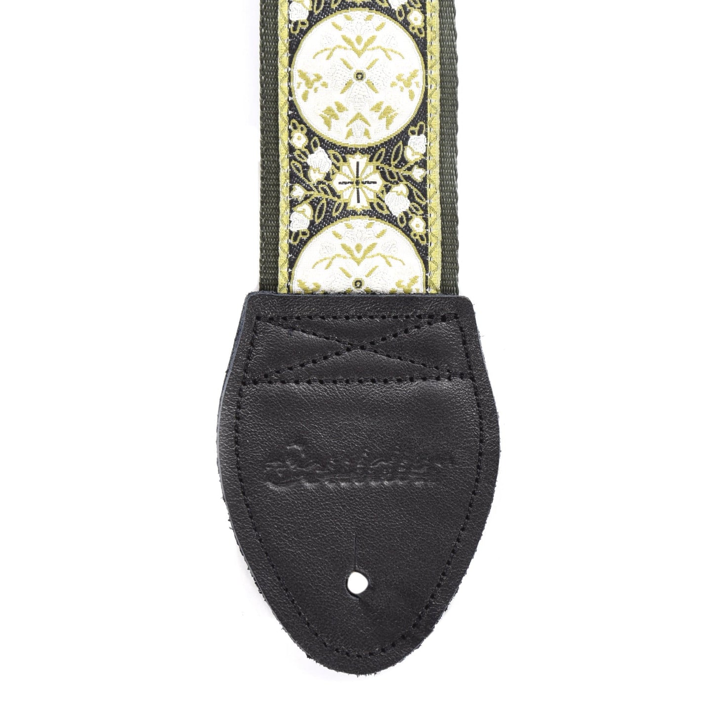 An Eco-friendly strap from Souldier, hand-made in Chicago from recycled auto seat-belts and salvaged leather. Very cool. Each unique strap features a 2 inch wide seatbelt, and end tabs made with 2-ply leather. Measures a full 60". These high-quality, durable straps will instantly add to the look of your guitar. They make an awesome gift! Souldier's straps and hand cut leather ends carry a lifetime warranty. Souldier is an independent design manufacturer, fusing aesthetic textile creation with functionality, inspired by musicians and created for the connoisseur. Made in USA.