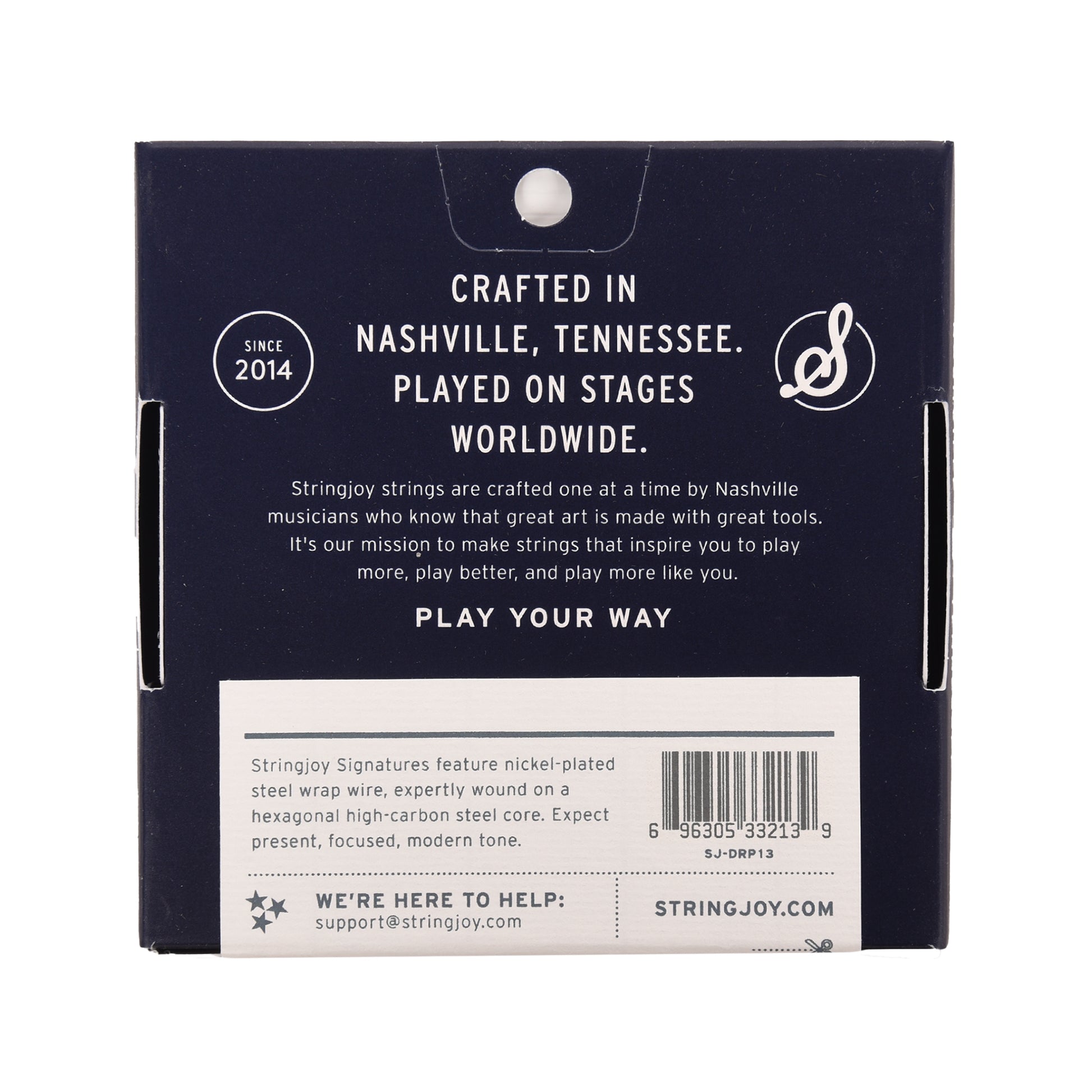 Our Drop 13s take all of the power of our Balanced 13s, but add in a heavier 6th string so that your guitar will be perfectly balanced when you drop the 6th string a whole step. Say goodbye to floppy bottom end—things are about to get heavy.