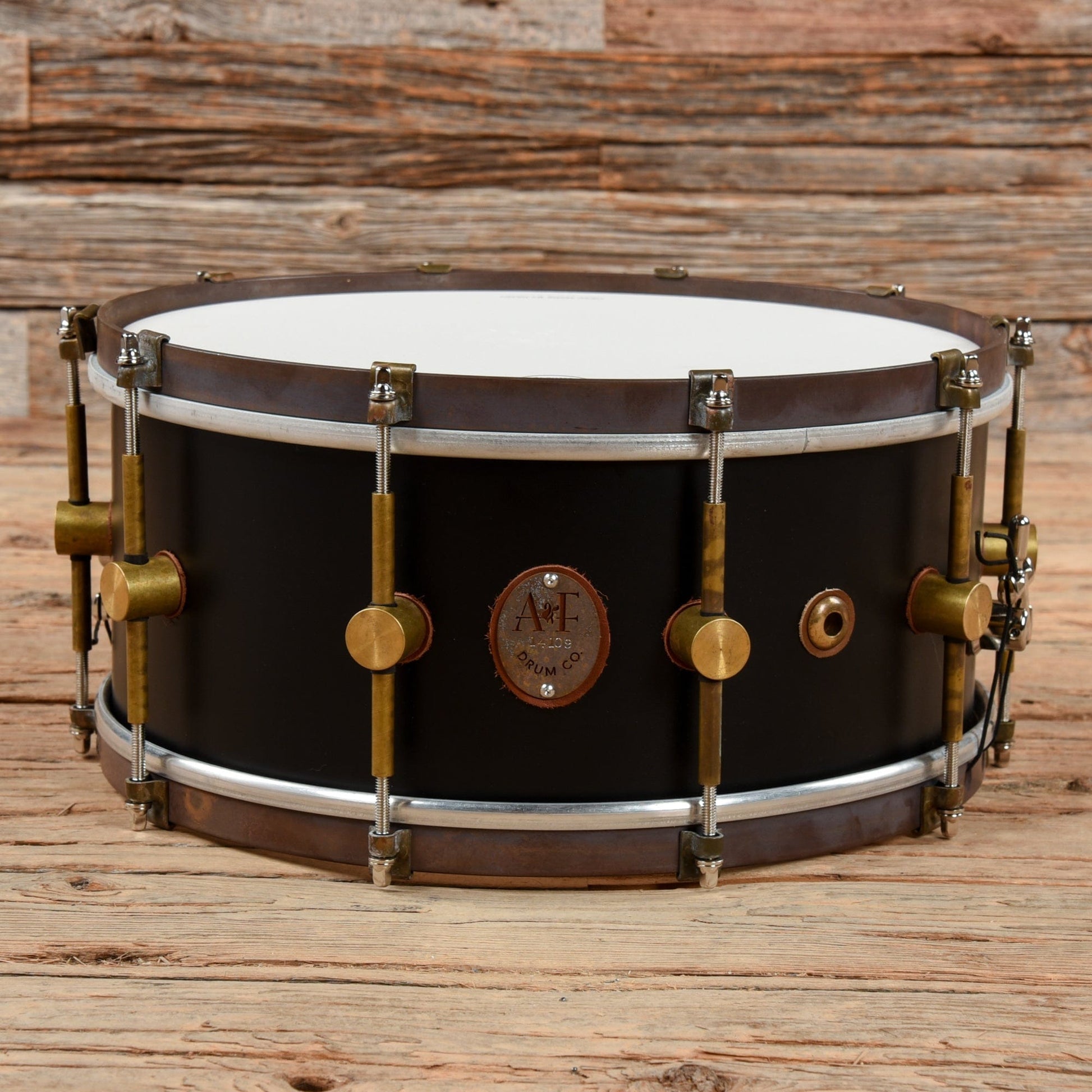 This A&F Drum Co. 6.5x14 Black Club Maple 10-Lug Snare Drum w/Brass Hoops is in great shape and working condition