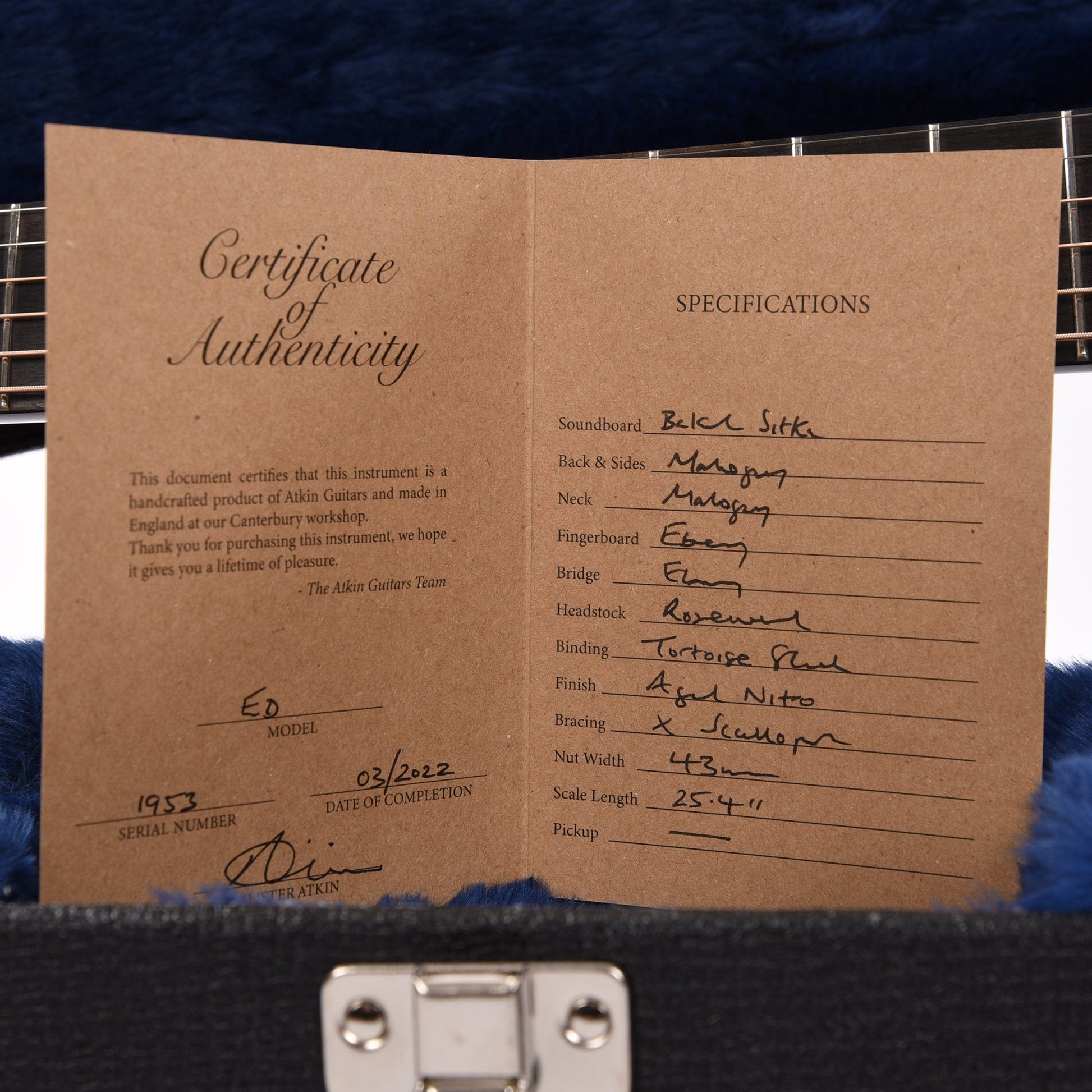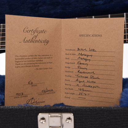Founded in Canterbury, England, in 1995, Atkin Guitars' uses a combination of traditional techniques and a little modern technology to handcraft around 350 guitars a year, all emanating the indefinable qualities that delight, surprise, and inspire us even after decades as players.