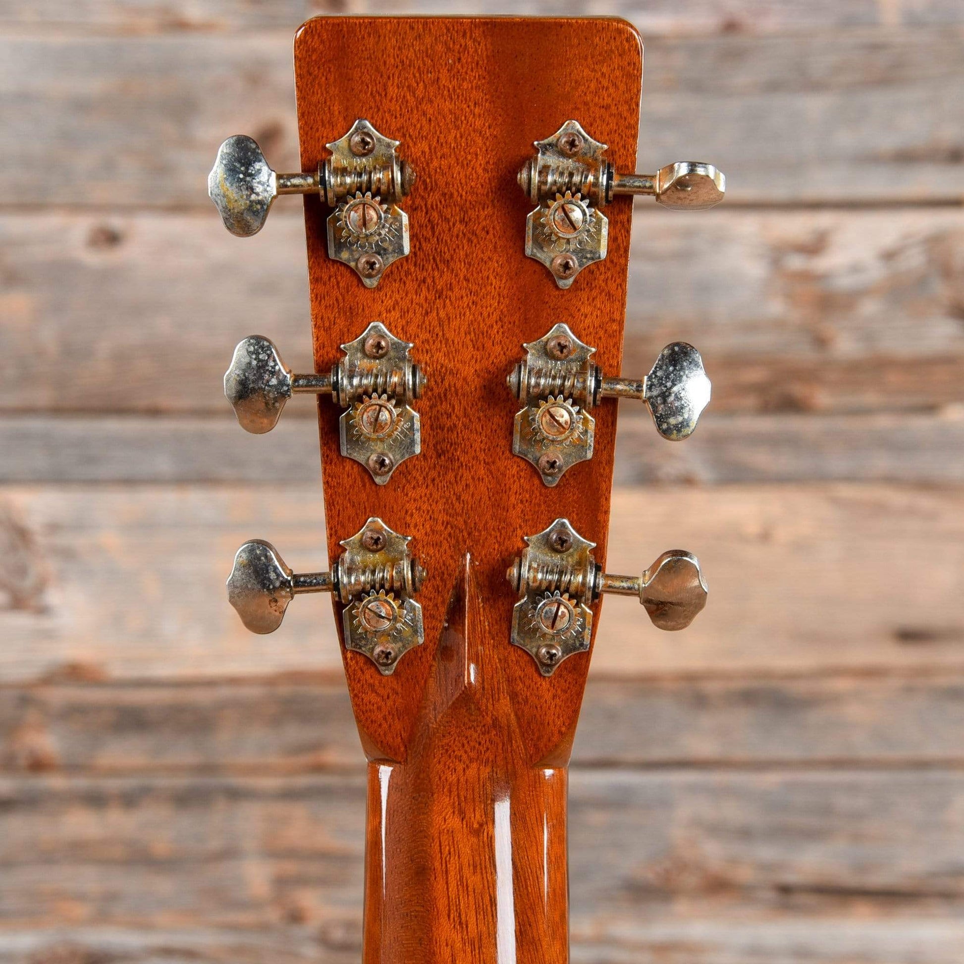 | Neck Details: | Mahogany neck with unbound ebony fretboard, diamond inlays, and soundhole-adjust truss rod. There is a crack in the fingerboard extending from the 14th fret to the end of the fretboard, which is stable. |