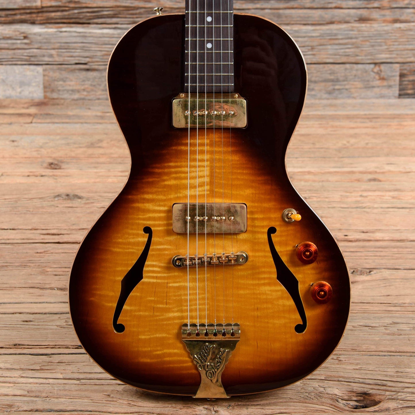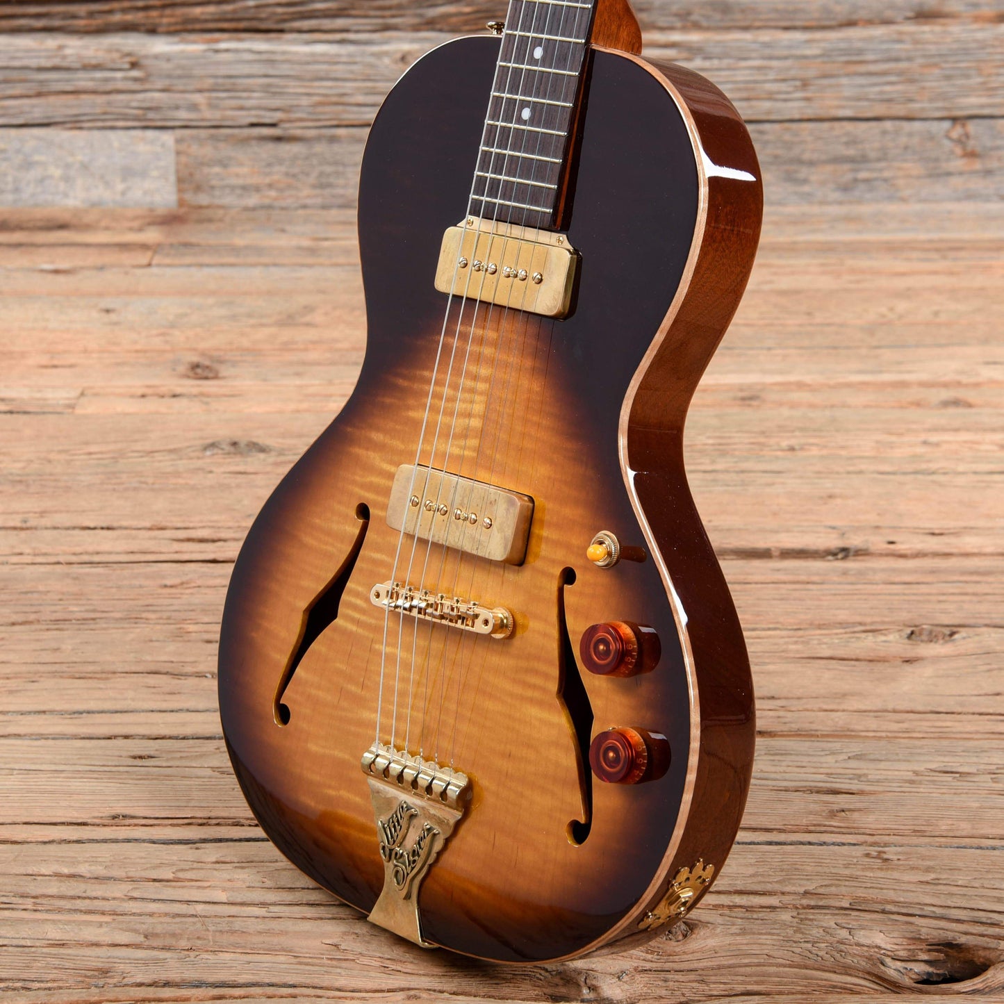 Body Details: Mahogany semi-hollow body with two piece flamed maple top.