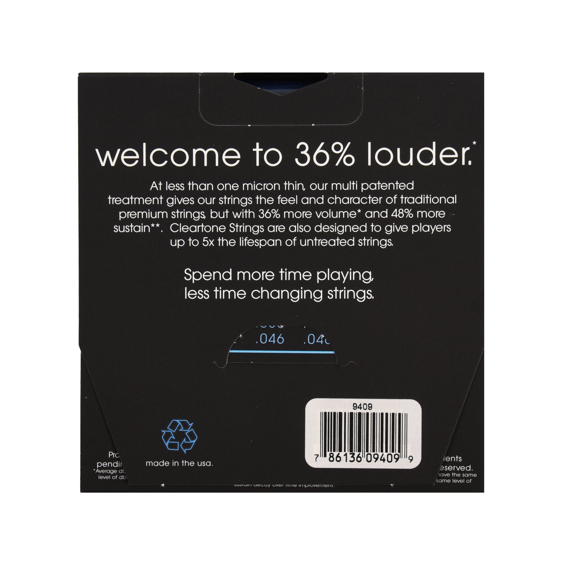 So you think you know coated strings, huh? Well, let me tell you that Cleartone Strings are far from coated strings you've used in the past. Cleartone Strings feature a patented and award winning treatment that is less than one micron thin yet withstands the hardest of strumming. That means none of the flakes, slippery feel or dead tone that coated strings are known for. In fact, our Cleartone Treatment actually increases volume over untreated strings while still giving you 3-5X the string life. This means that you will be changing strings less and playing a whole lot more. Let's face it, changing strings sucks but your tone shouldn't.