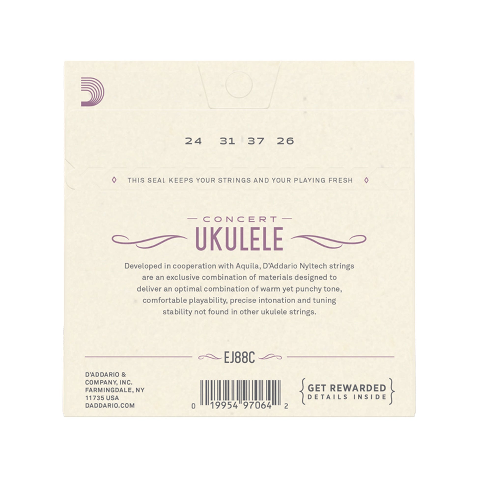 D'Addario EJ88C sets are designed for use with all concert ukuleles. Each string within this set is made from our exclusive Nyltech material and optimized for standard GCEA tuning.