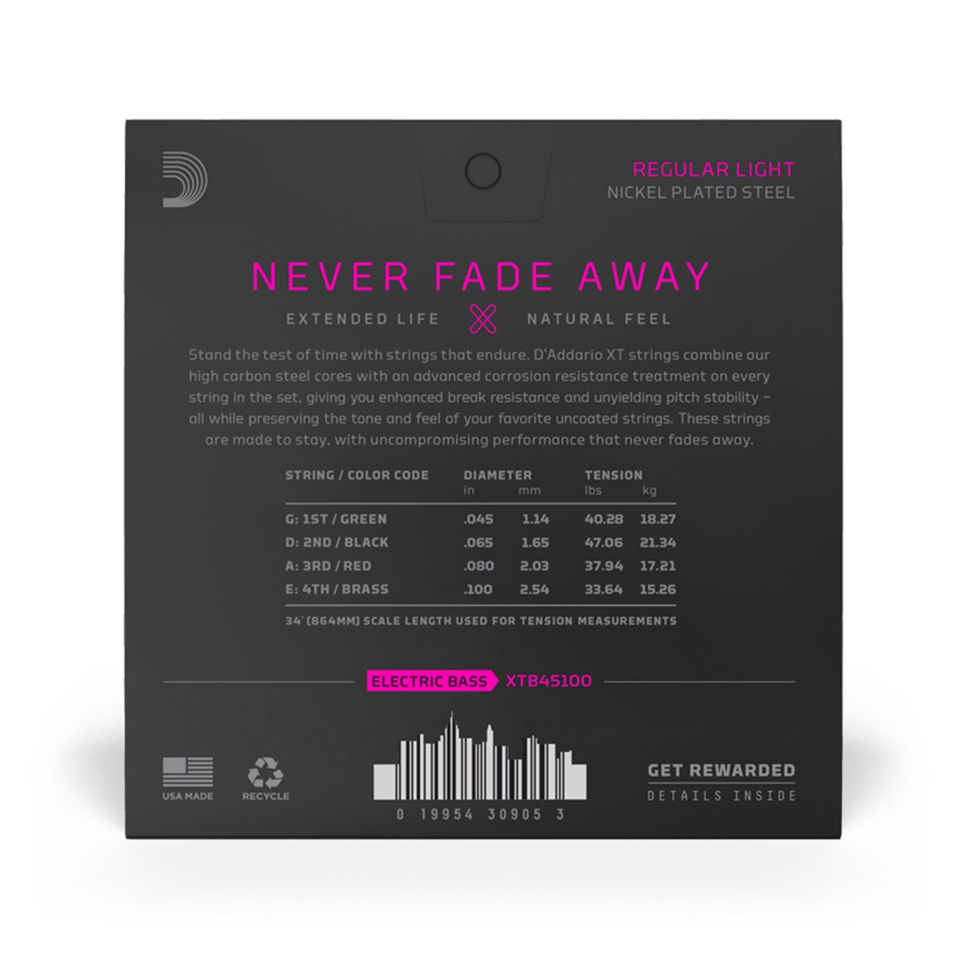 D’Addario XT strings feature high carbon steel cores with an extended lifespan treatment on every string in the set, giving you enhanced break resistance, pitch stability, and long-lasting performance – all while preserving the tone and feel of your favorite uncoated strings. These strings are made to stay, for performance that never fades away.